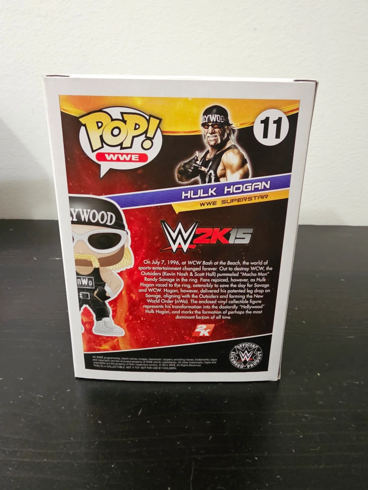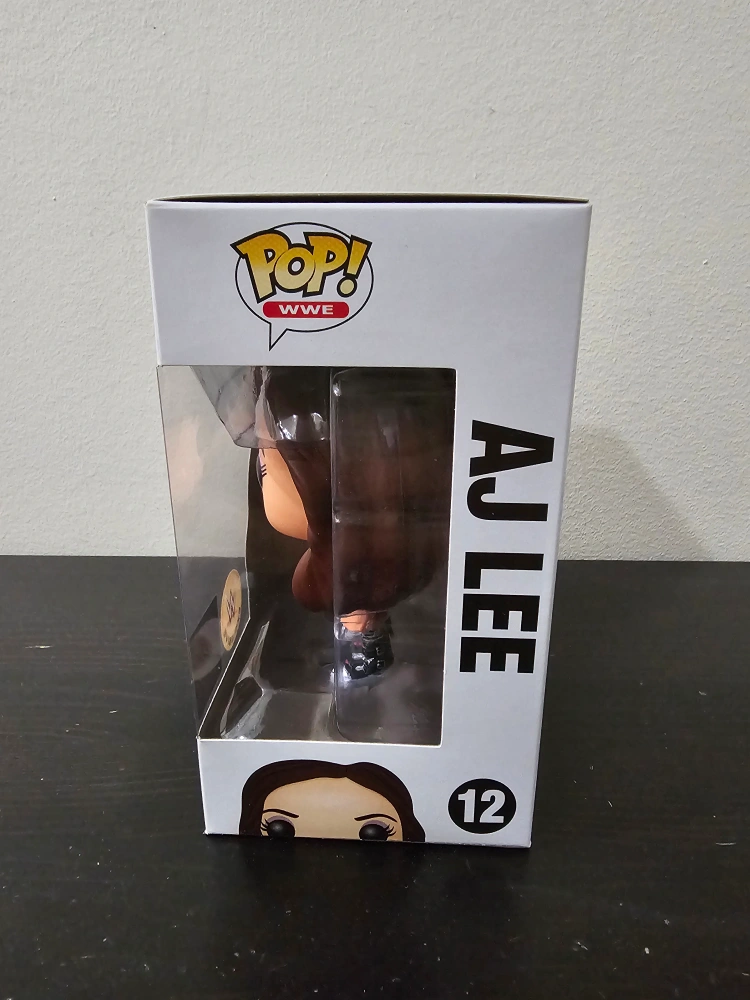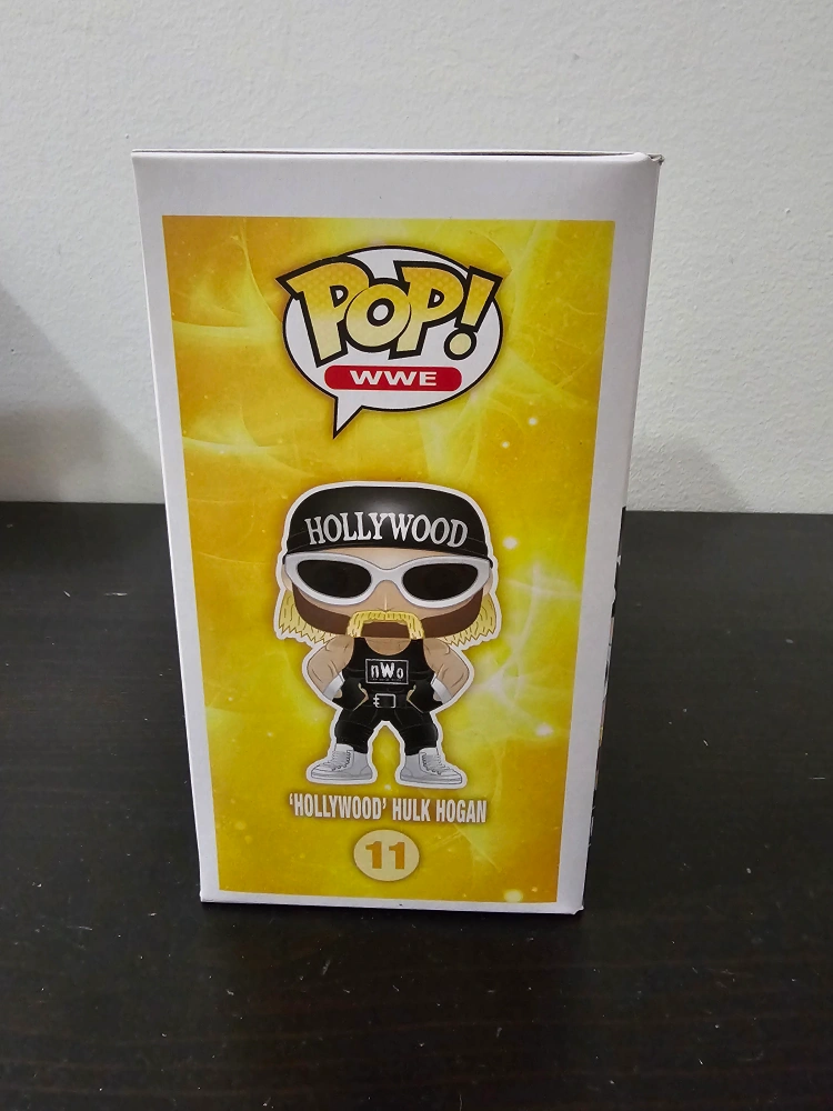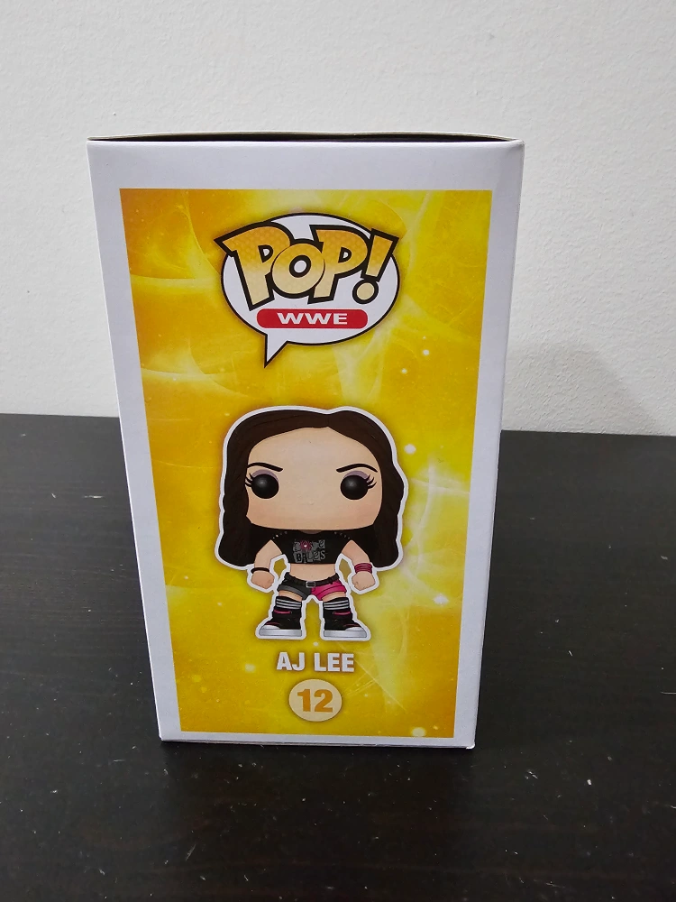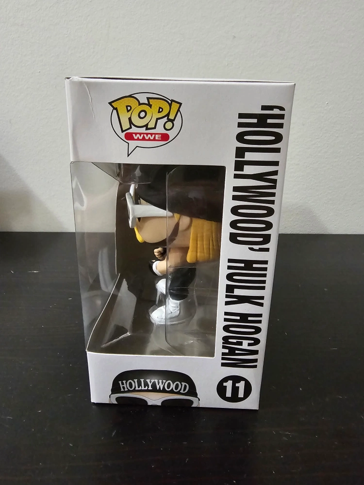 Two WWE Pop! Vinyl figures. One is AJ Lee, the other is Hollywood Hulk Hogan. Both are in their original packaging. Collector's items. Box condition NM. Prices in picture.