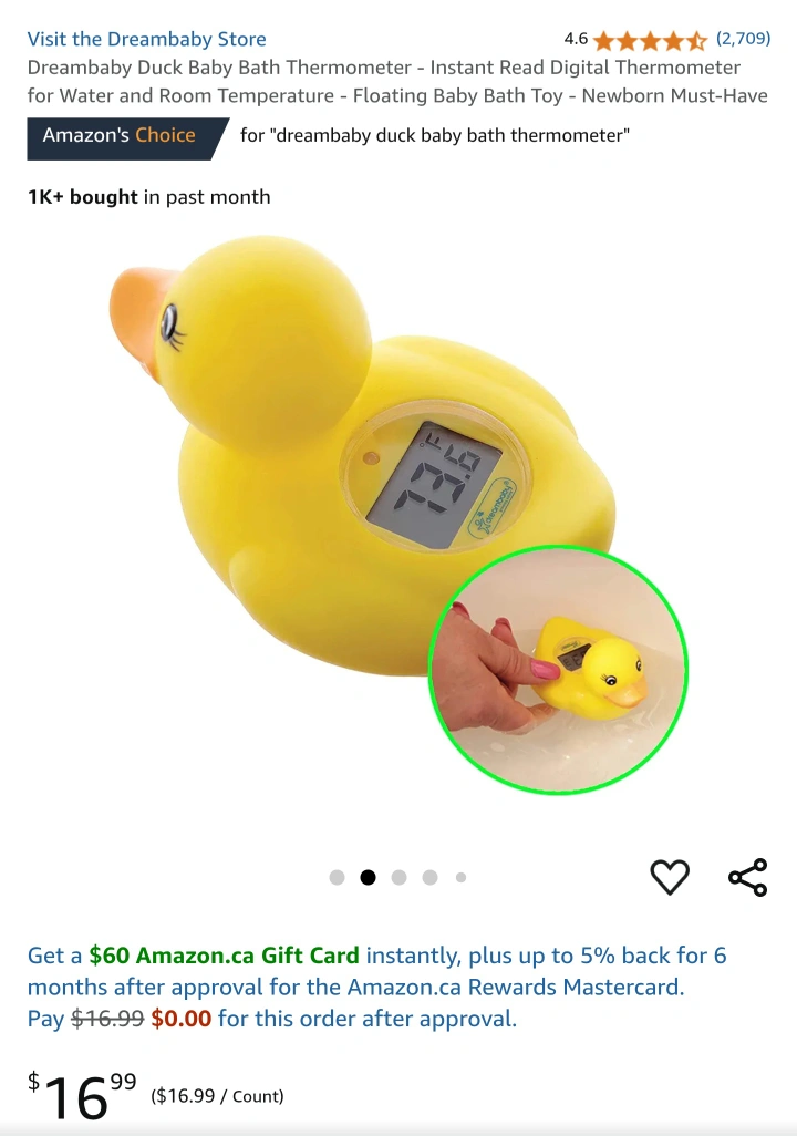 Dreambaby Duck Baby Bath Thermometer - Instant Read Digital Thermometer for Water and Room Temperature - Floating Baby Bath Toy - Newborn Must-Have