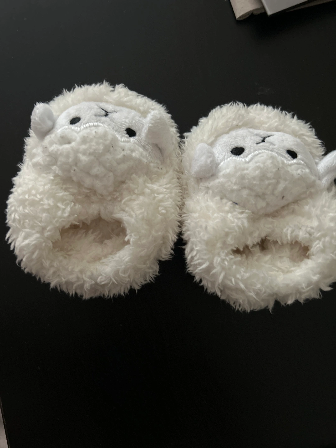 Baby lamb slippers. Soft and fluffy. Perfect for keeping little toes warm.