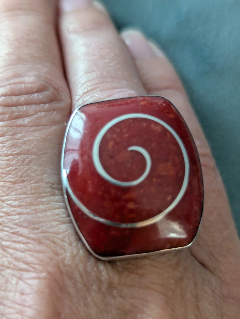 ring silver swirl against red - stunning