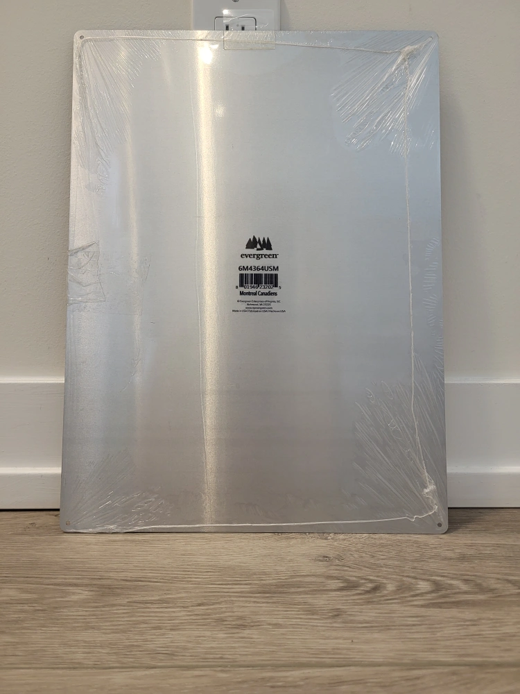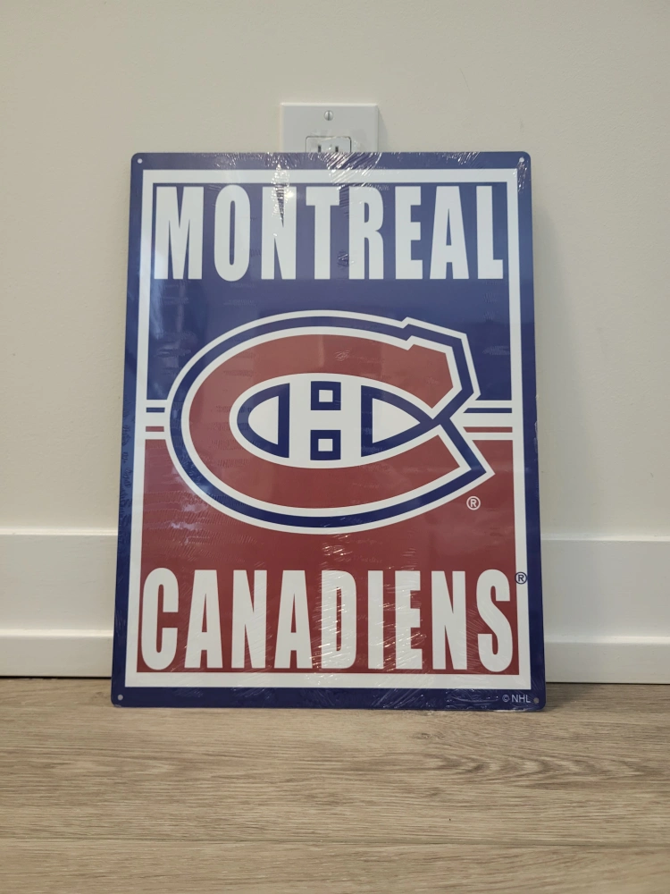 New metal sign. Features the Montreal Canadiens logo. Officially licensed NHL product. Perfect for any fan cave or hockey enthusiast.