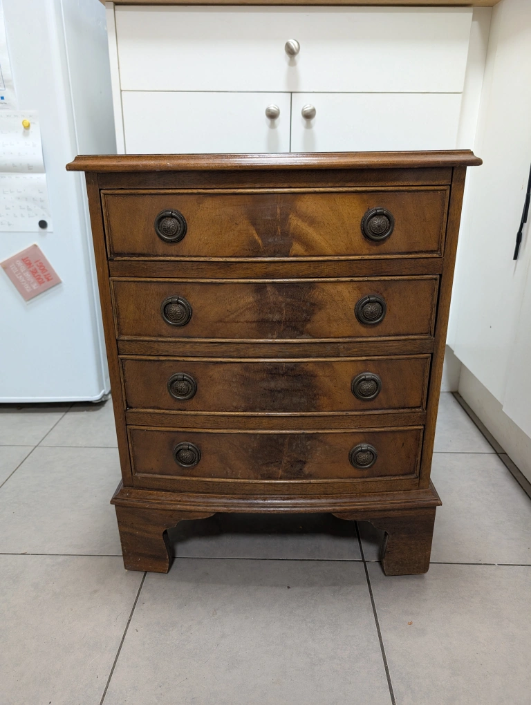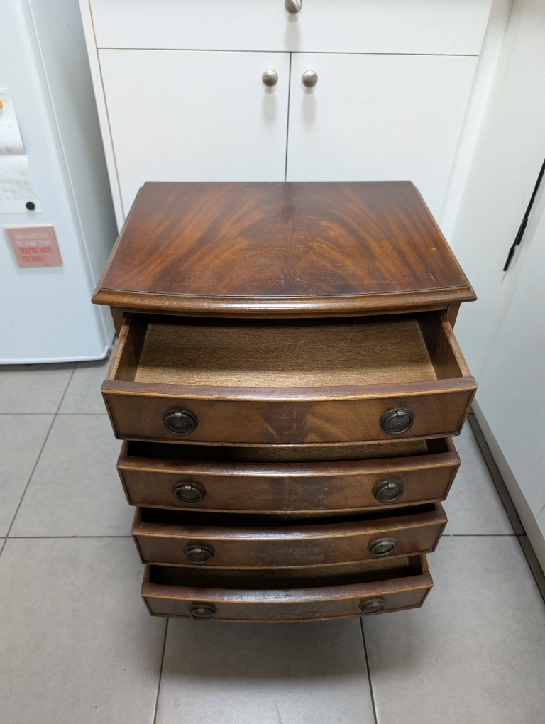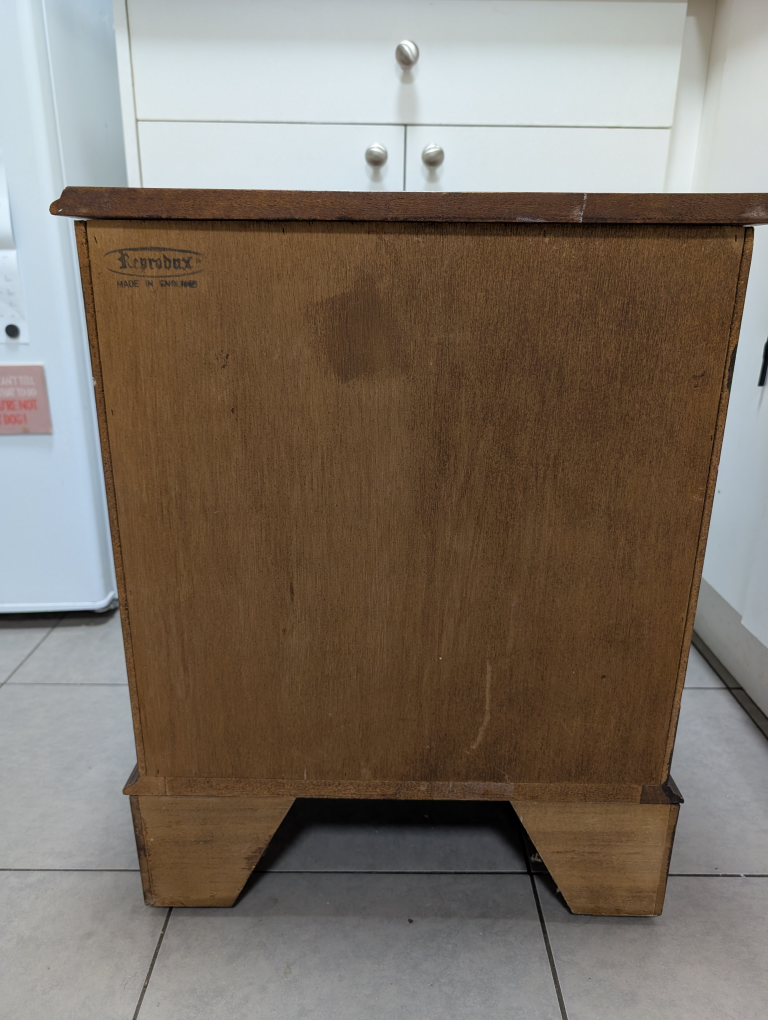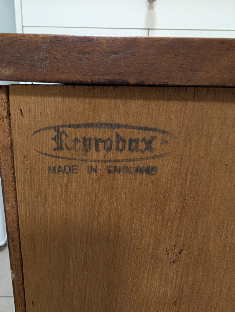 Mid Century Modern Antique Bevan-Funnel Reprodux Mahogany chest of drawers c.1960. Measurements in pictures.