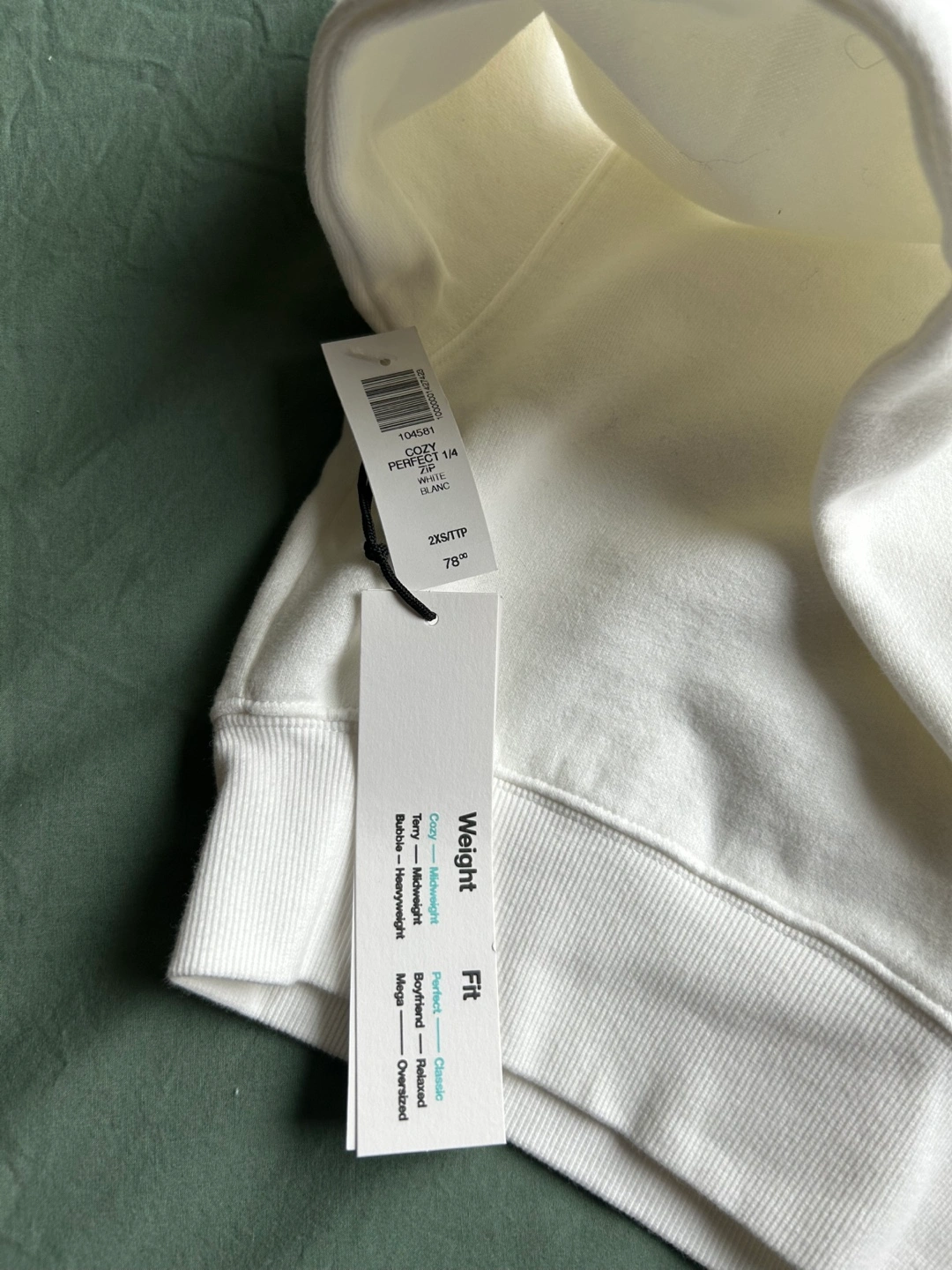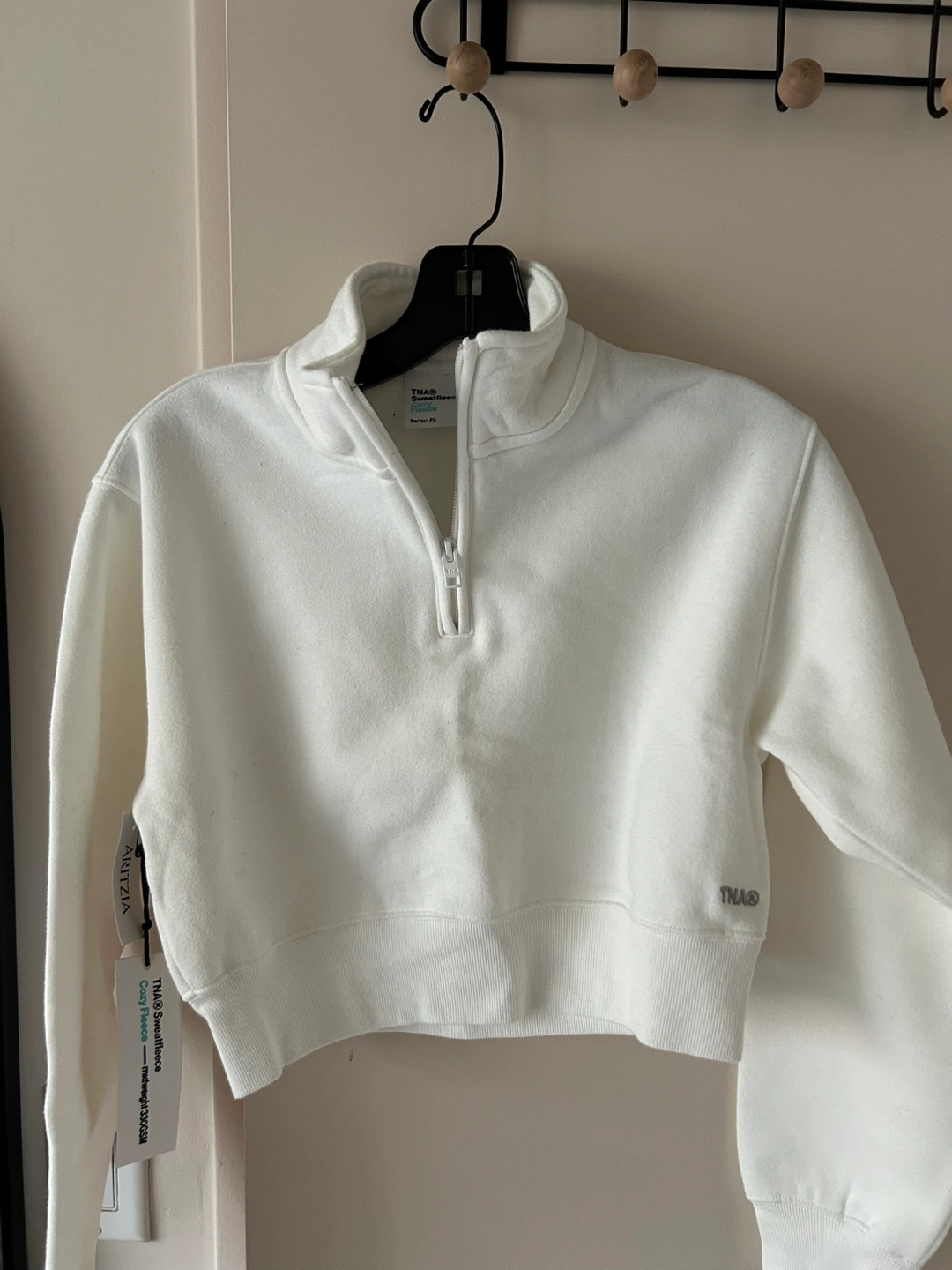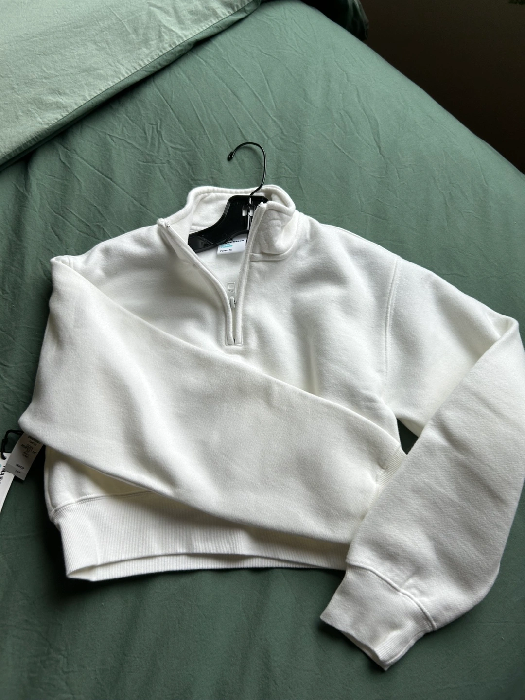 White cropped half zip pullover. Small size. Brand new with tags. Soft and cozy. Perfect for layering.