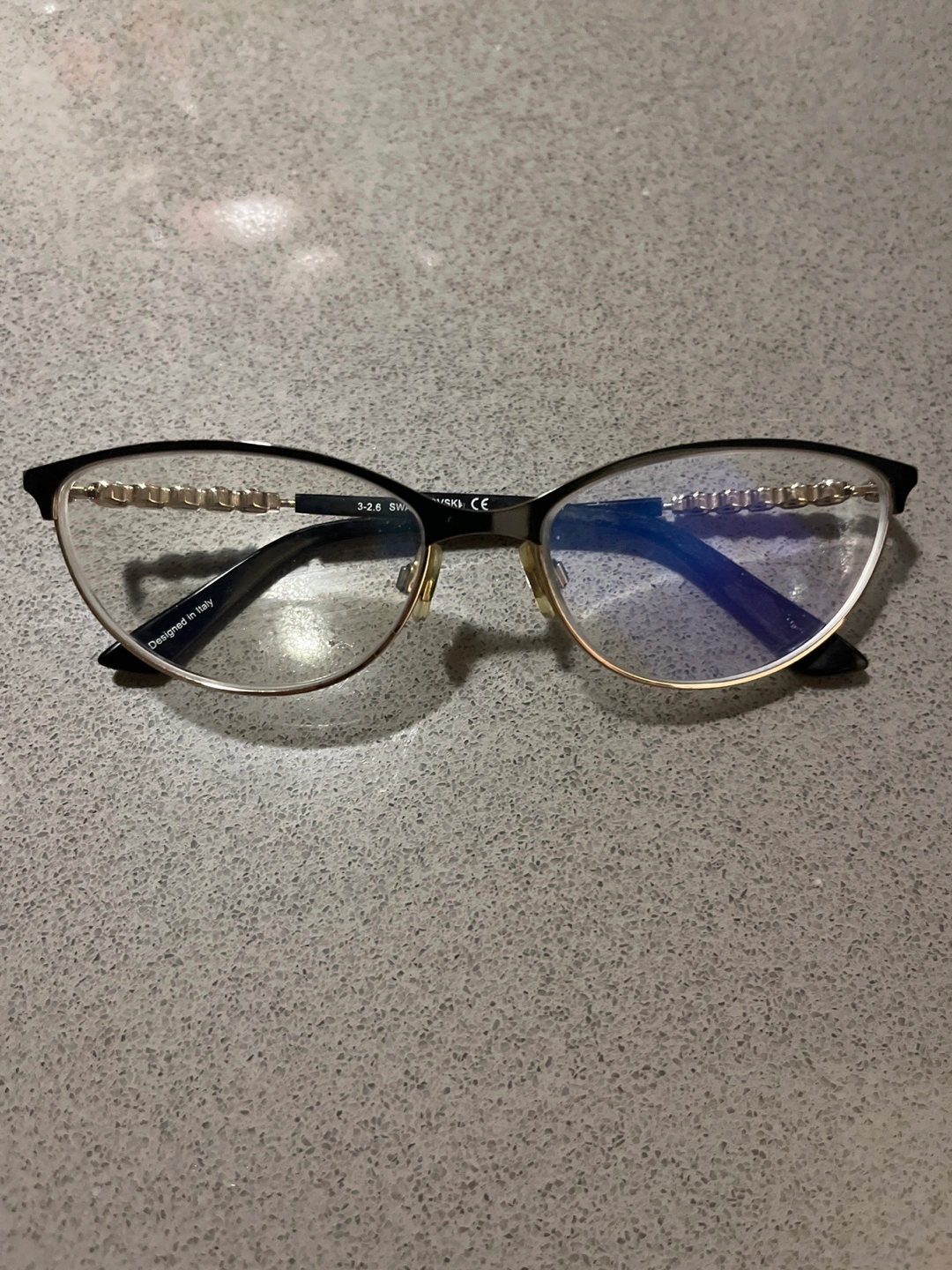 EUC. Currently has my prescription in there, but they could easily be replaced with another prescription, plain lenses, or sunglass lenses. Discontinued genuine Swarovski style that's hard to find elsewhere