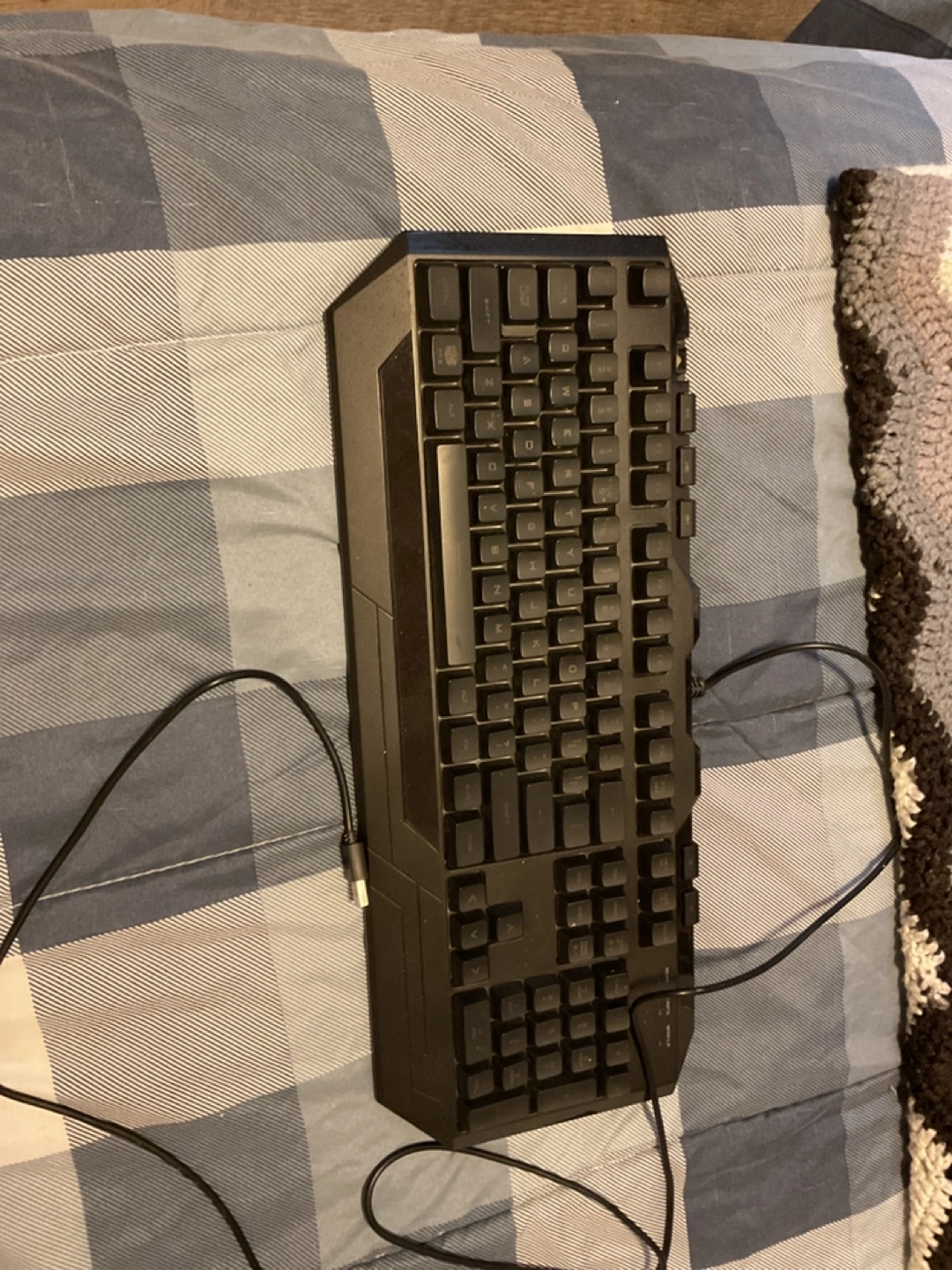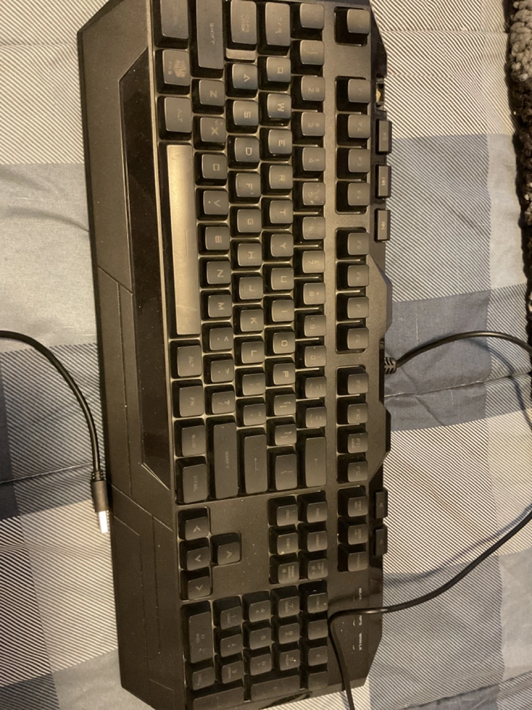 74Wired gaming keyboard. Black plastic. USB connection. Multiple function keys. Good condition.
