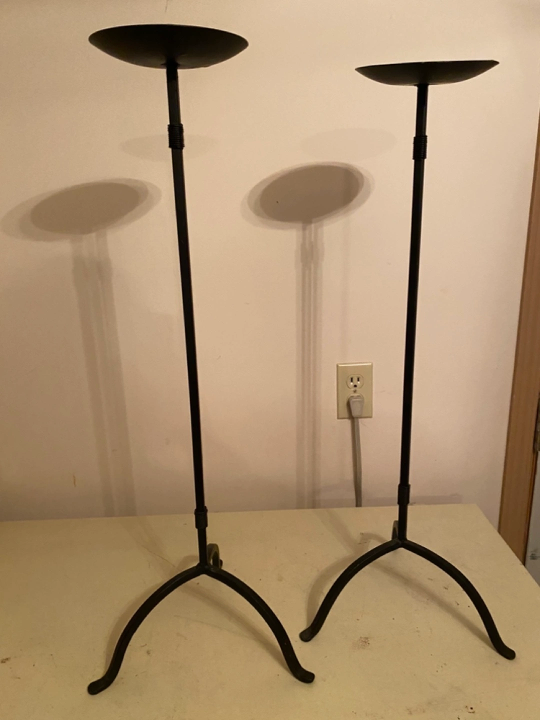 Tall black metal candle stands. Elegant design. Perfect for adding ambiance to any room. Minimalist style.