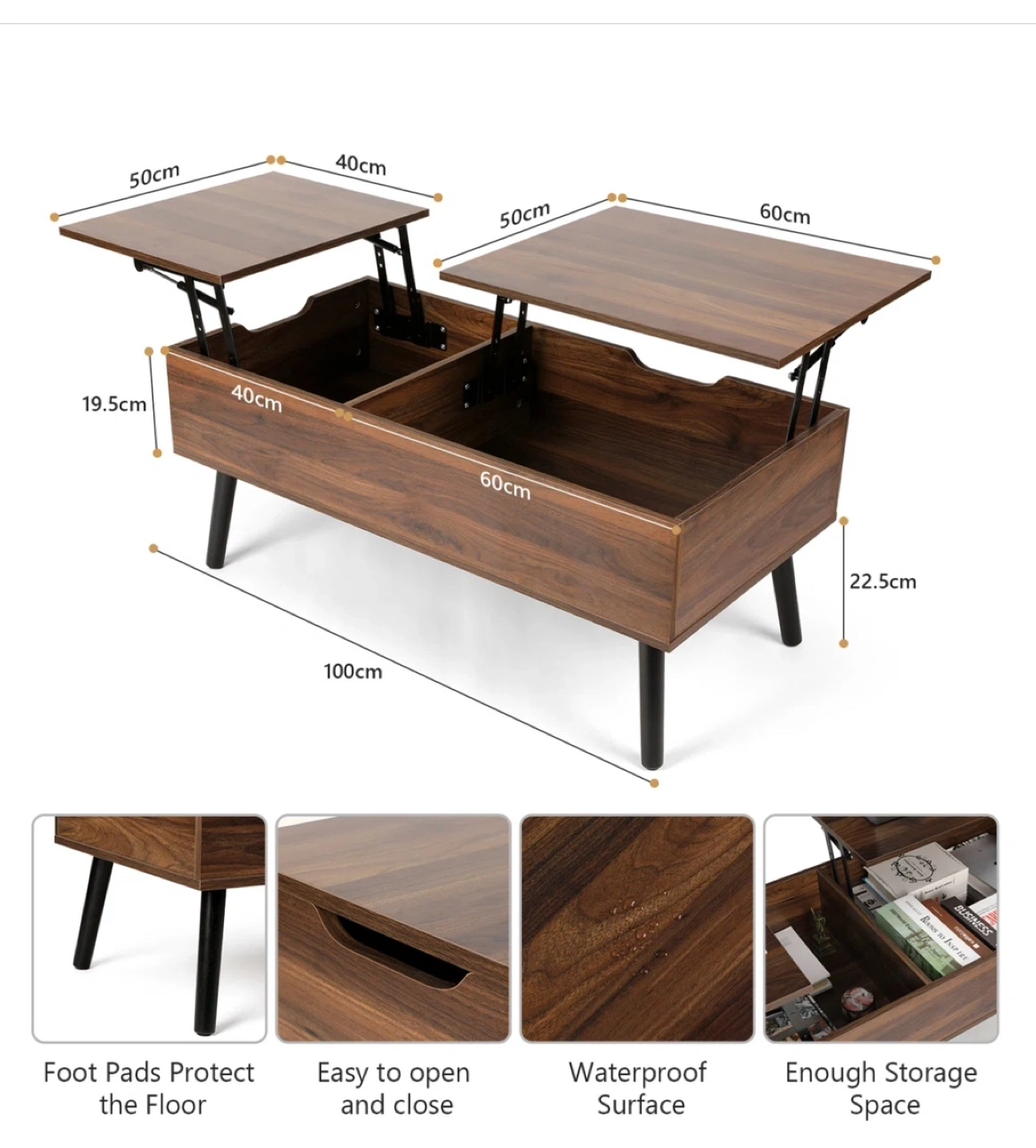 Upgrade your living space with this sleek, multifunctional lift-top coffee table that brings both style and practicality to your home. Designed with a high-quality walnut wood finish, it effortlessly blends into any home aesthetic—modern, minimalist, rustic, or mid-century.