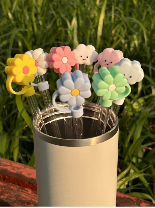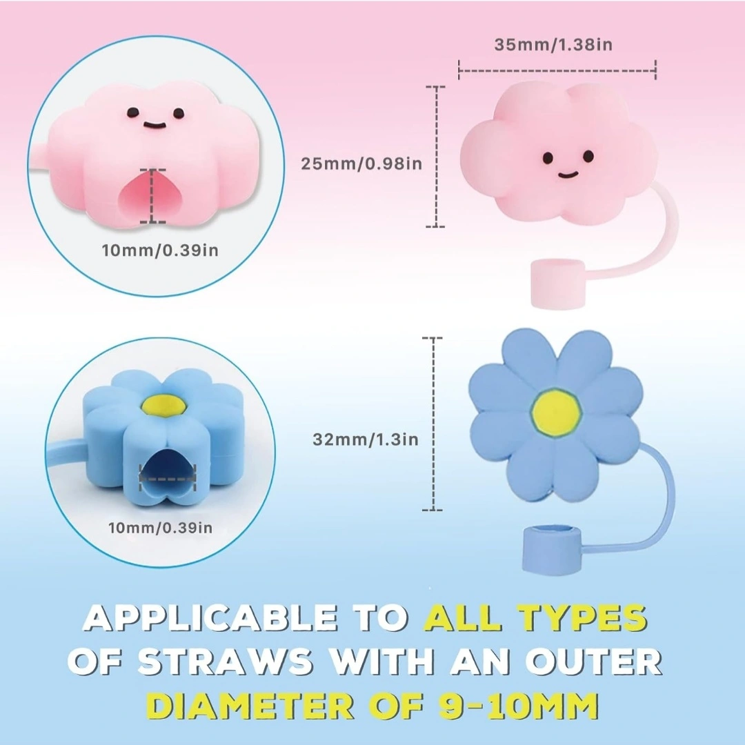 Cute Silicone Straw Toppers - Flowers & Clouds