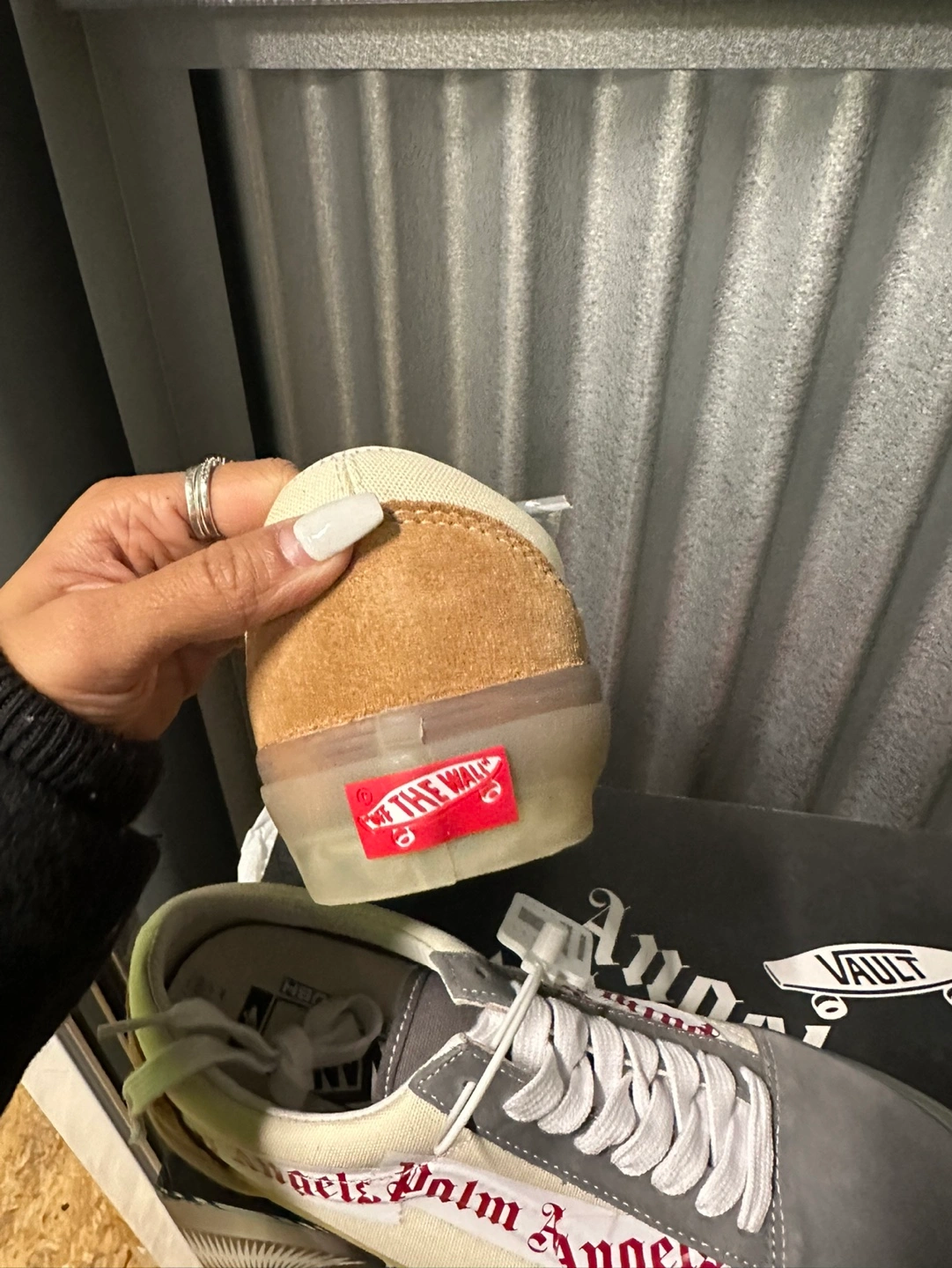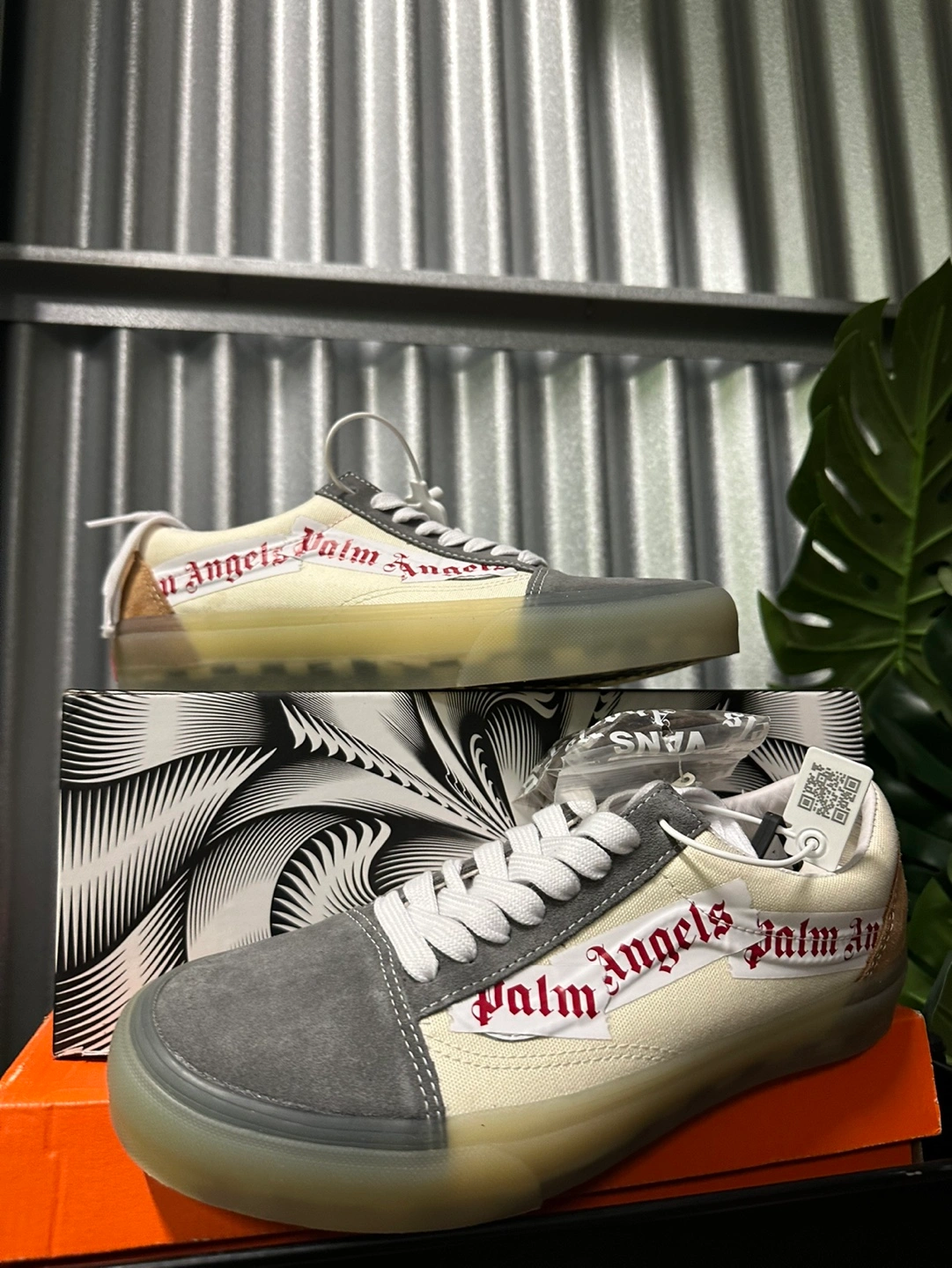 Brand new Palm Angels x Vans collaboration. Low-top sneakers. Off-white and grey colourway. Translucent sole. Comes in original box.