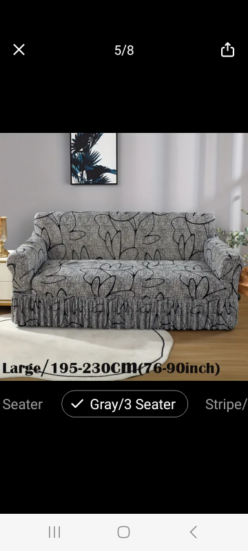 Stretchable sofa cover. Fits sofas 195-230 cm. Gray floral pattern. Three-seater.