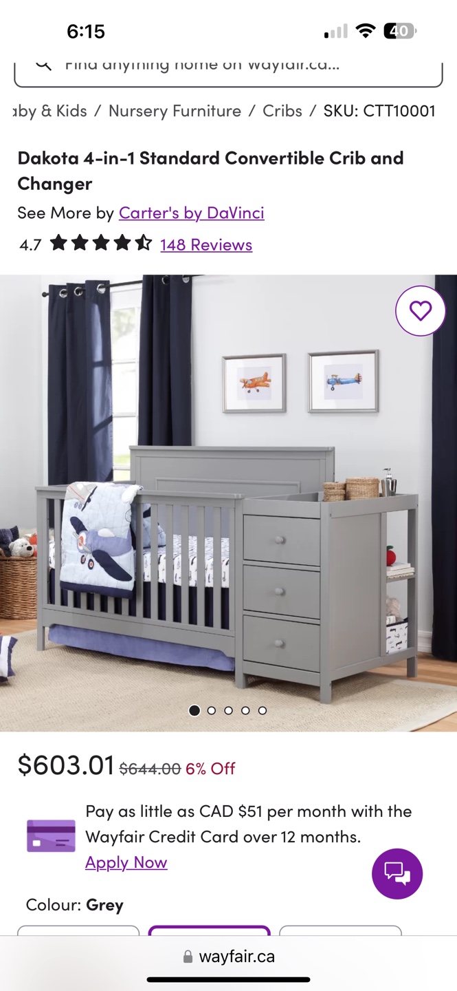 1 / 31 / 3Buy & SellCribCribFree. Gray crib, including change table.ConditionGoodWHERE TO MEET5233 Fairford CrescentView MapSELLERElleHEARTLAND715 reviews3 chats·0 favorites·40 viewsSEND CHAT TO SELLERHi Elle! I’m interested in your listing.Hi Elle! I’m interested in your listing.Get the Karrot app to chatSign In to chat