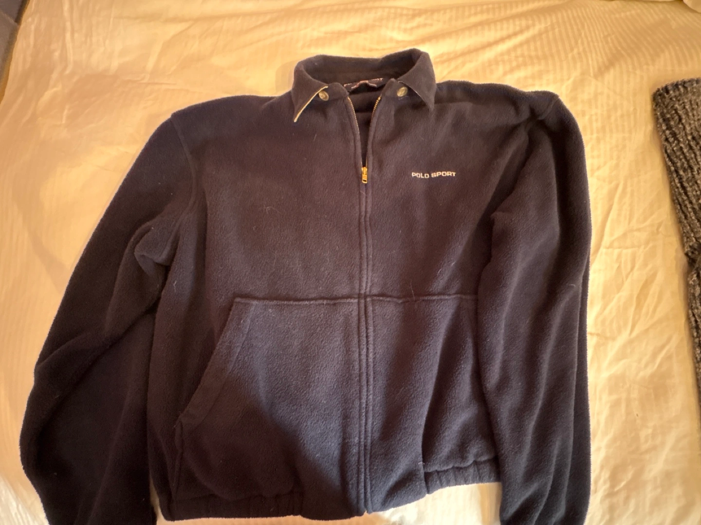 Men's medium Polo Sport Ralph Lauren fleece jacket. Full zip closure. Elasticated cuffs and hem. Good used condition. Made in Canada.