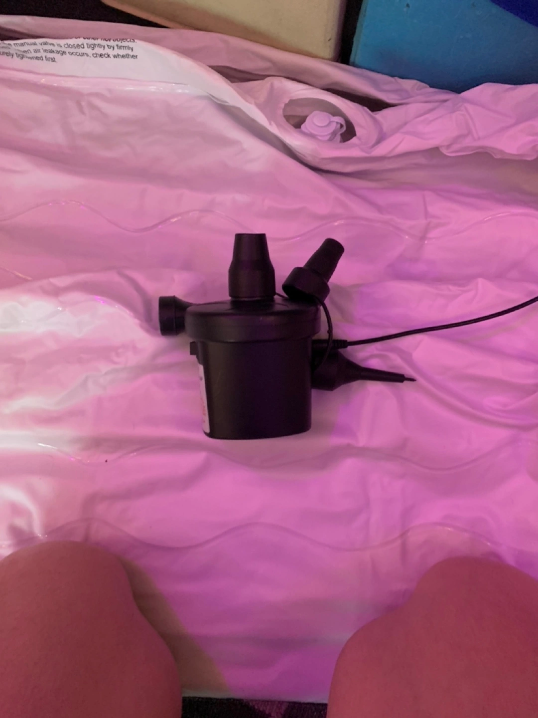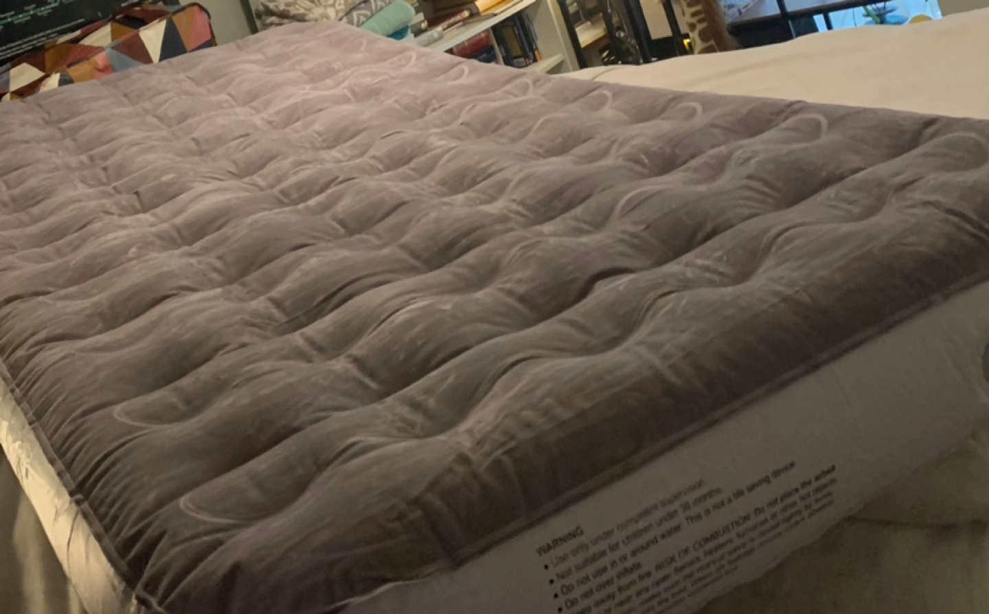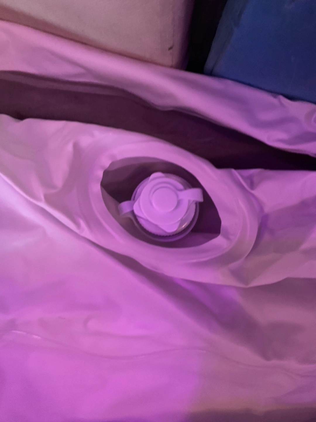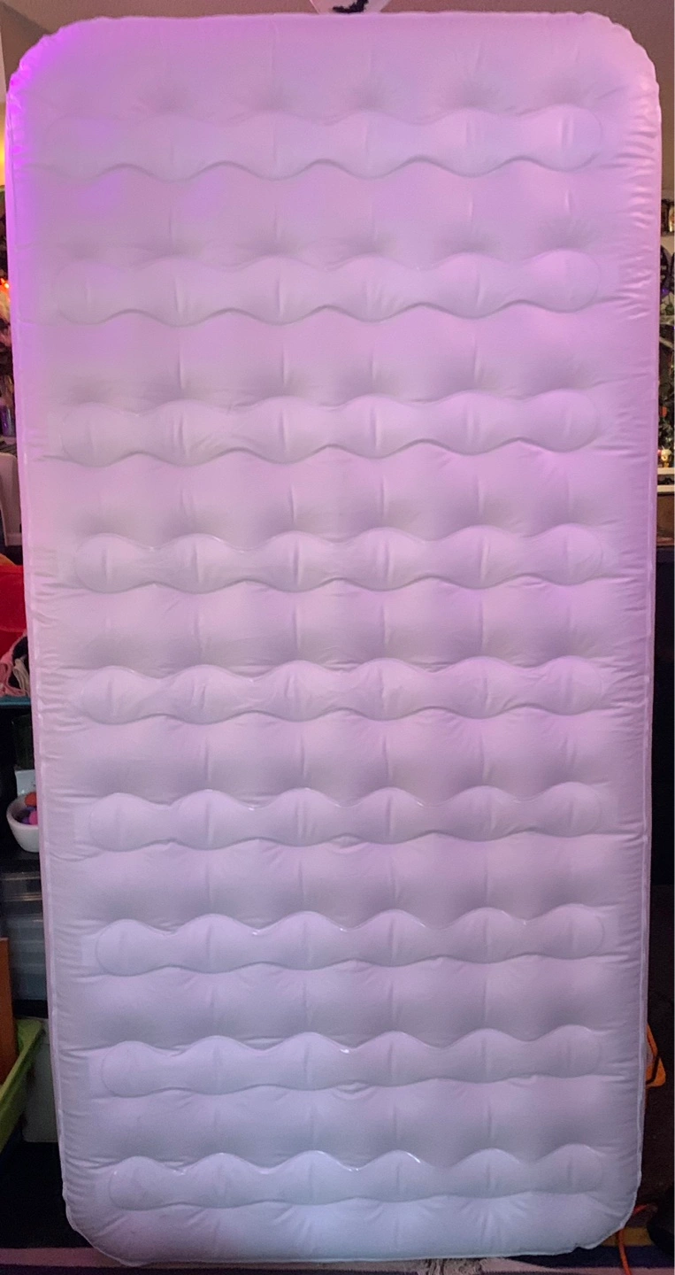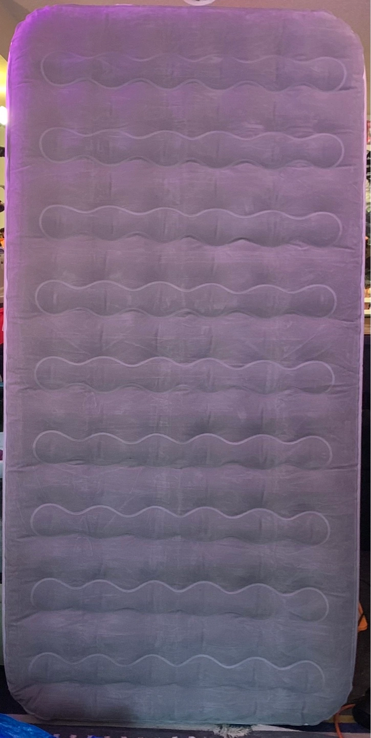 Never used. Inflated once to make sure it didn’t have holes. Flocked top