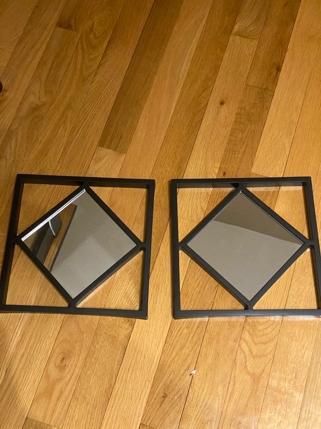 Free Set of 2 mirrors measuring 6” x 6” each. Outside surround is plastic (measures 10” x “10”