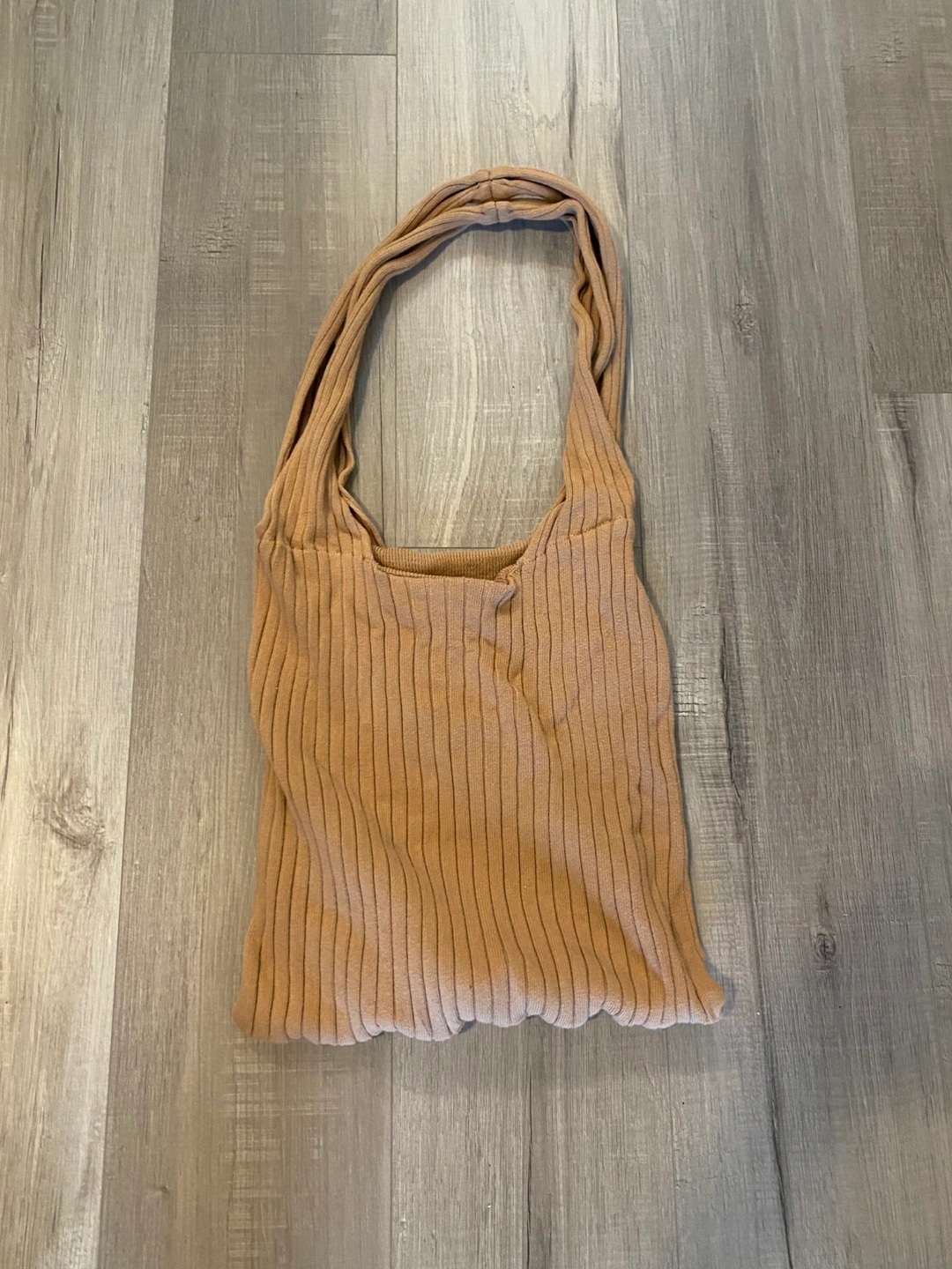 Lightweight knit tote bag. Tan colour. Perfect for everyday use.