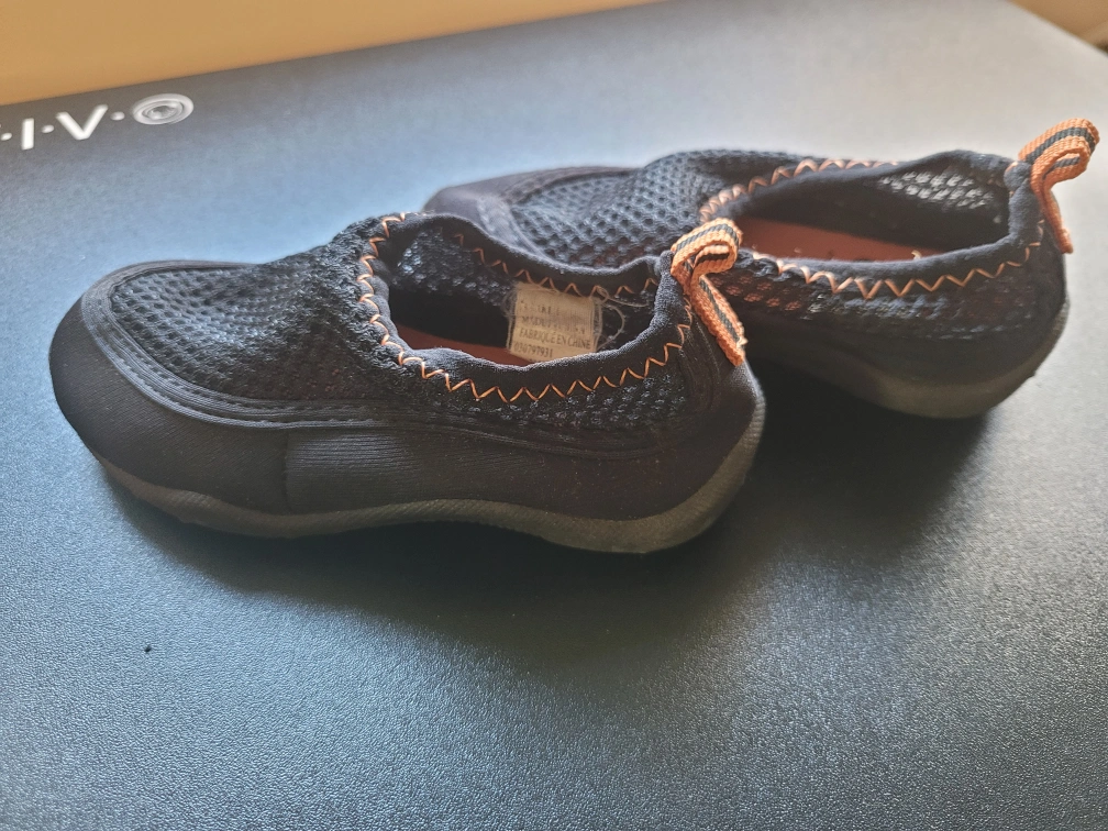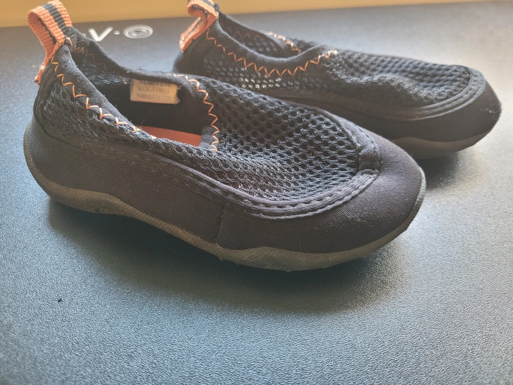 Black water shoes. Size small, 5/6. Slip-on style. Mesh upper. Good for water activities, beach, lake or Waterpark.