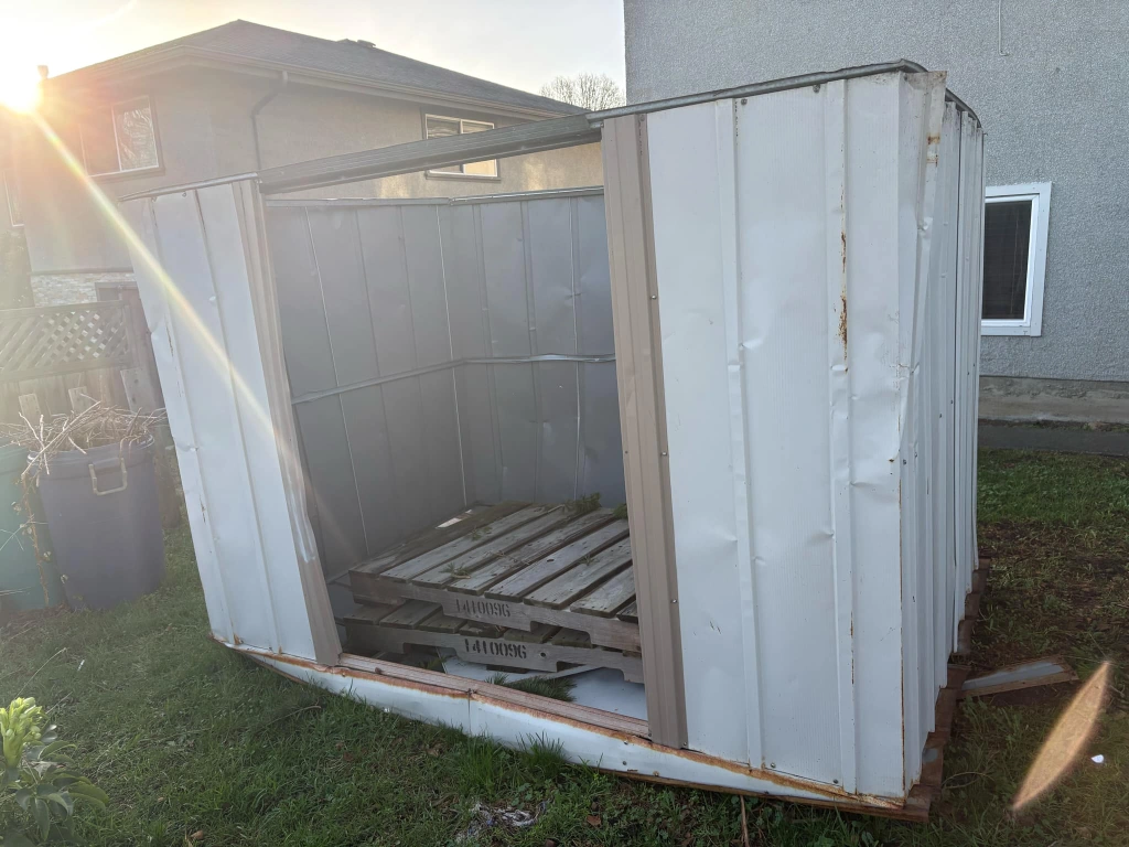 Shed is Free , my tenants dont want it anymore, the high winds blew it over as it was only sat on concrete.