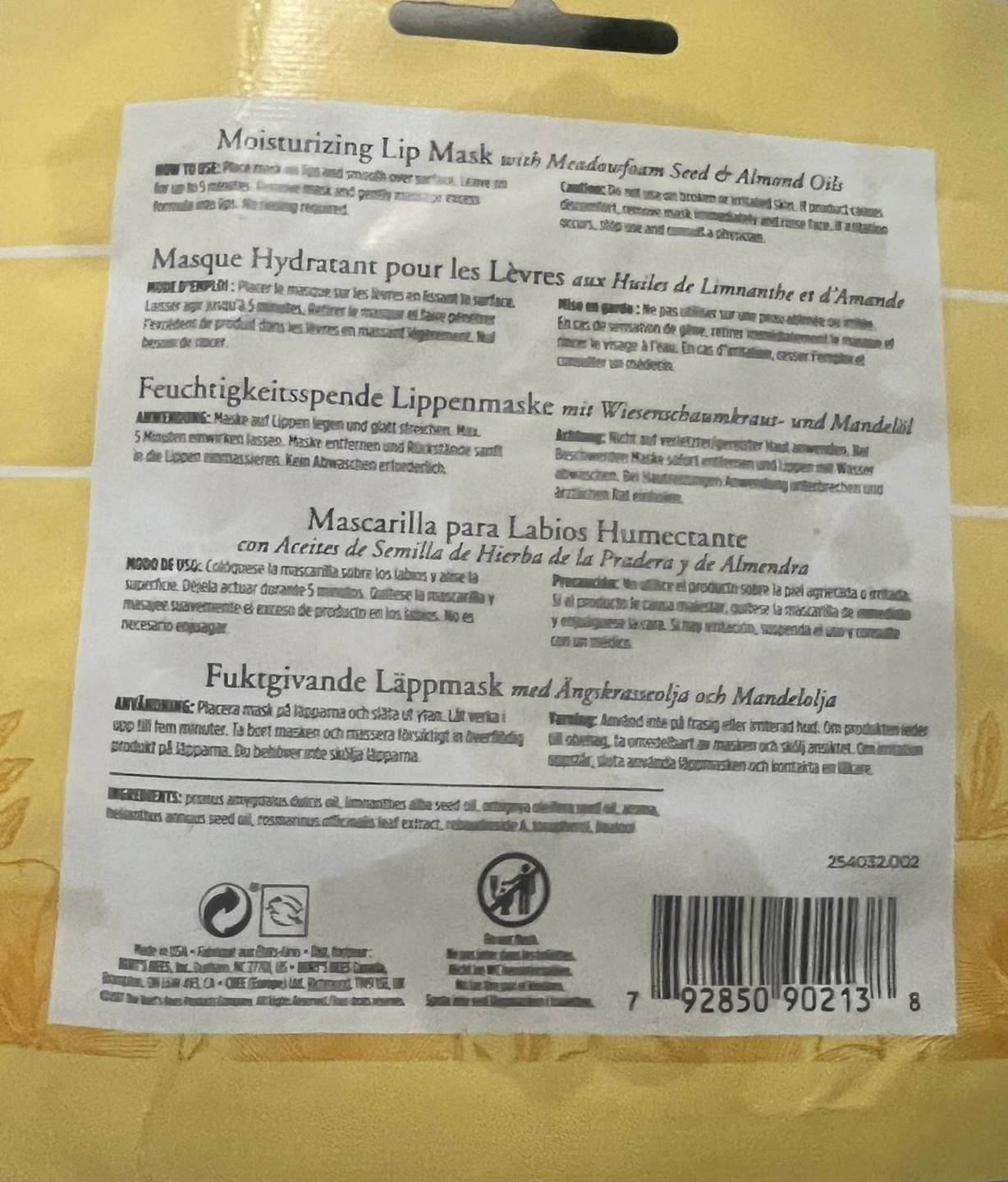Burt's Bees Honey Lip Scrub exfoliates and revitalizes. Burt's Bees Moisturizing Lip Mask contains Meadowfoam Seed & Almond Oils. Single-use mask.
