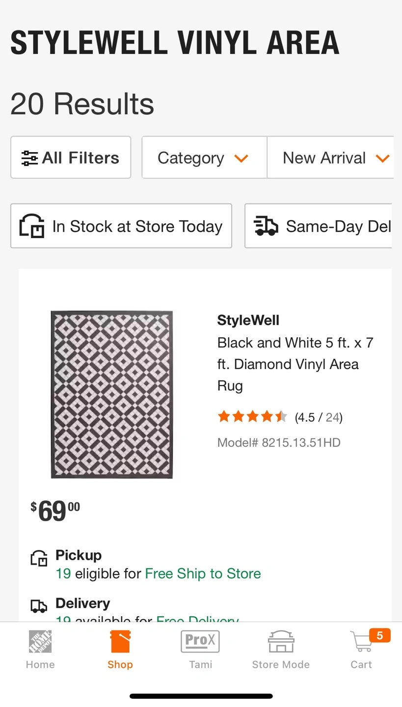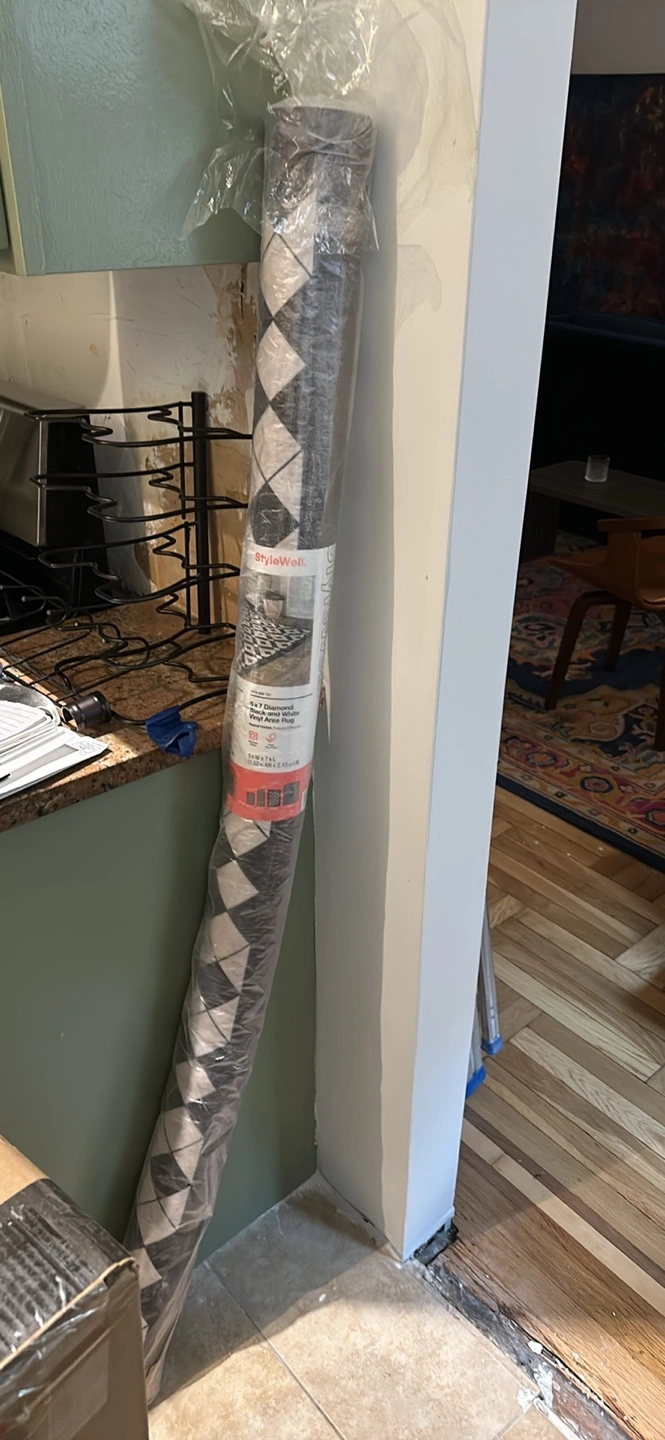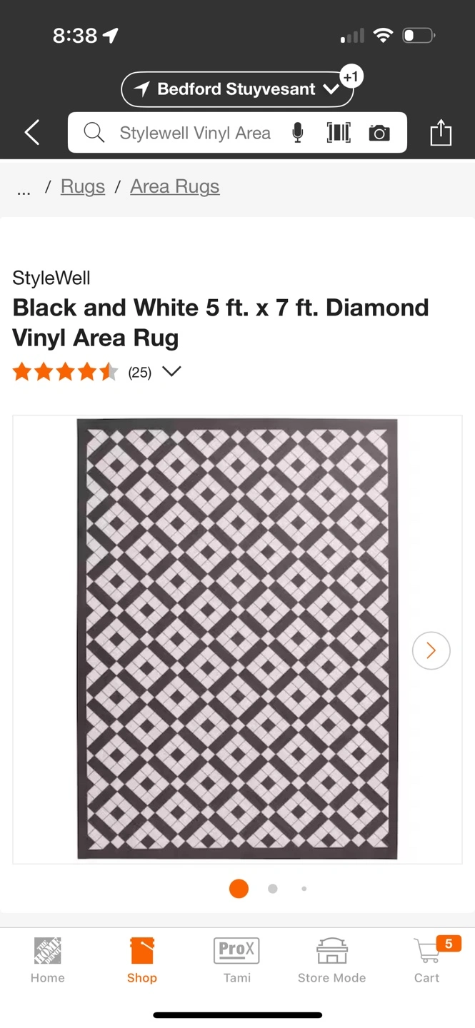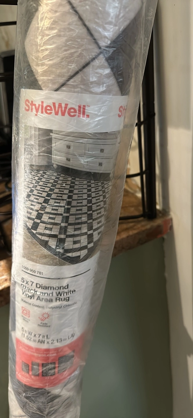 New StyleWell 5x7 ft. vinyl area rug. Black and white diamond pattern. Water resistant and easy to clean. Pickup in crown heights near Medgar Evers College