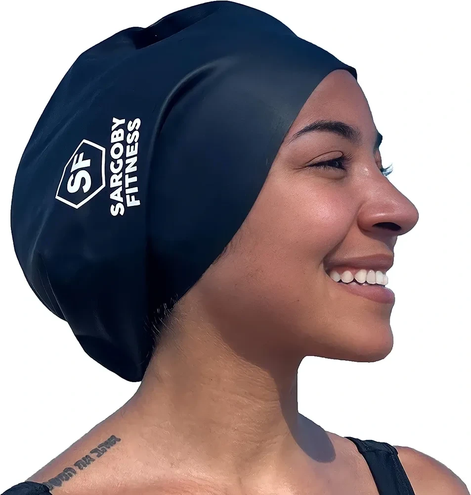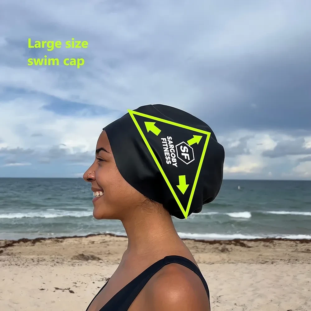444Brand new in packaging Retails for $19 +taxes Black large-size silicone swim cap. CREATED SPECIFICALLY FOR DREADLOCKS, DREADS & BRAIDS - This adult unisex extra large dreadlock swim cap is designed to be have larger volume than your typical swimming cap braids, this is shown by green triangles in the pictures. This swimming cap has enough room to fit any bulky hairstyle such as Locs, Braids, swim caps dreadlocks & Afro hair. TWO SIZES AVAILABLE - Please see video & pictures to help with your choice. Large size (L) is ideal for voluminous hair as such as braids. The L size is designed to be Large! COMFORTABLE FIT - NOT TOO TIGHT! This large swim caps for braids fit around your head is no tighter than a headband. Easy to put large swim caps for braids on and off. The much larger than normal of swimming caps means it can comfortably cover your hair and ears. THICKER HIGH QUALITY SILICONE USED - We have chosen a stronger, longer lasting silicone which will ensure that this loc swimming cap can be relied upon! The dread swimming cap thickness also ensures that your hair is held up inside this dreadlocks swimming cap.