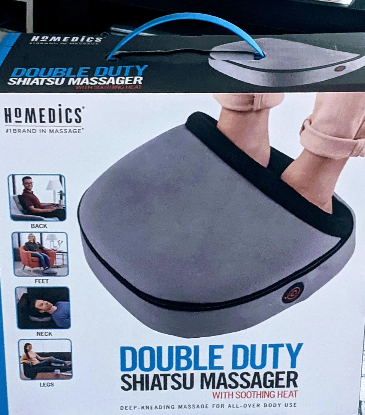 Double Duty Shiatsu Massager with Soothing Heat.