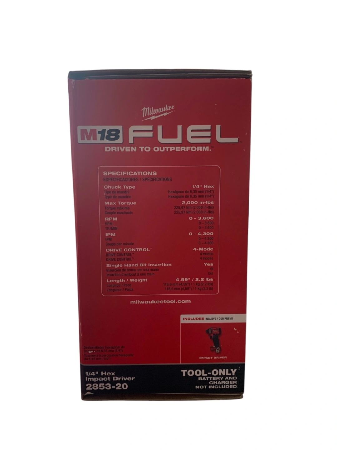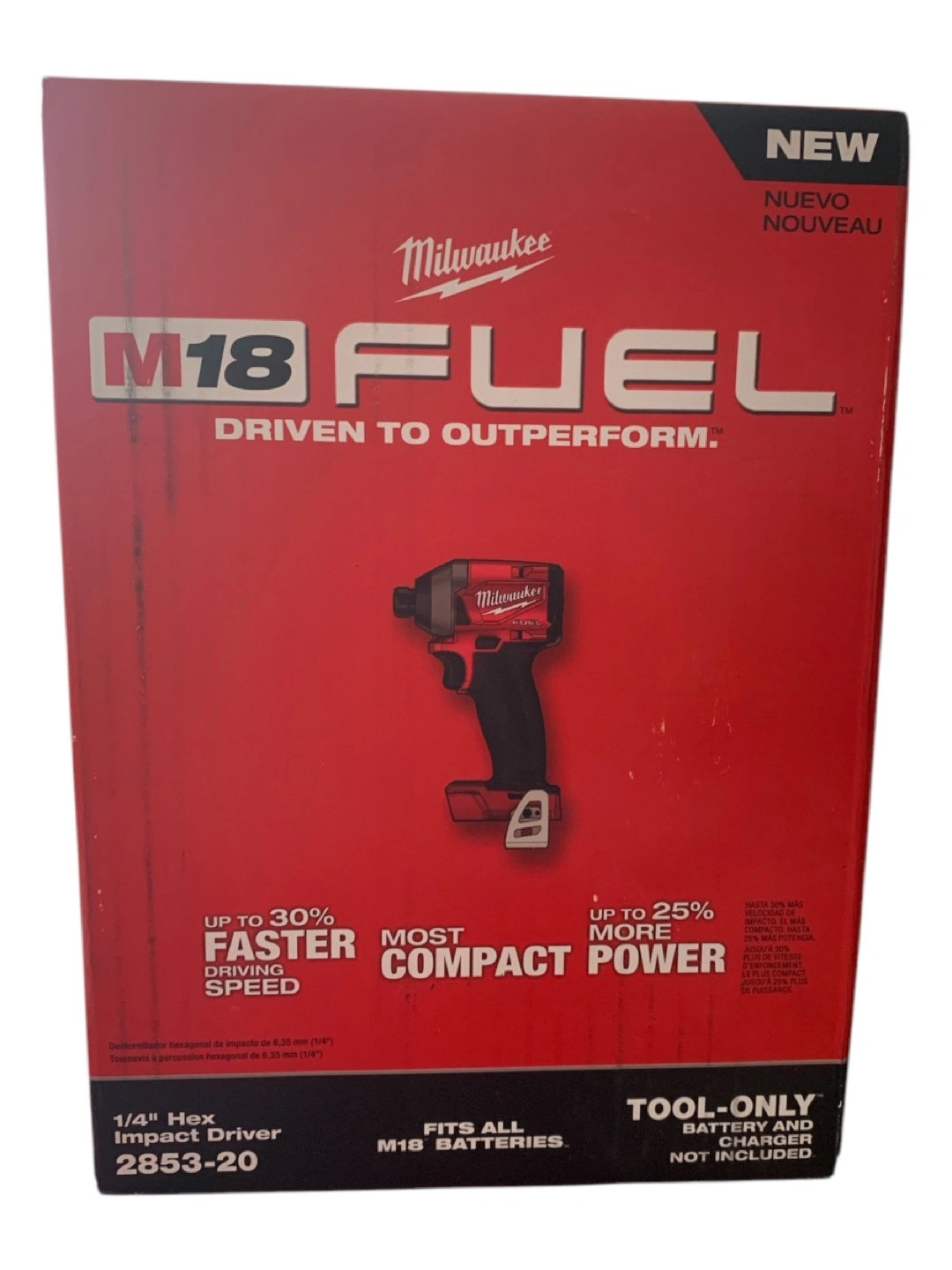 New Milwaukee M18 FUEL 1/4" hex impact driver. Tool only, battery and charger not included. Up to 30% faster driving speed. Most compact power. Model 2853-20.