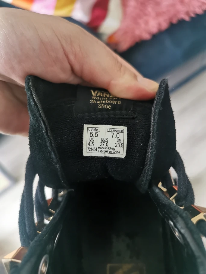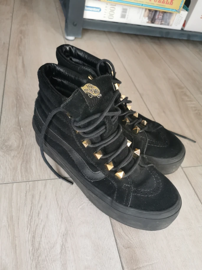 Black suede high-top sneakers. Platform sole. Gold studs. Lace-up closure. Excellent condition. Size 7 Women's (US).