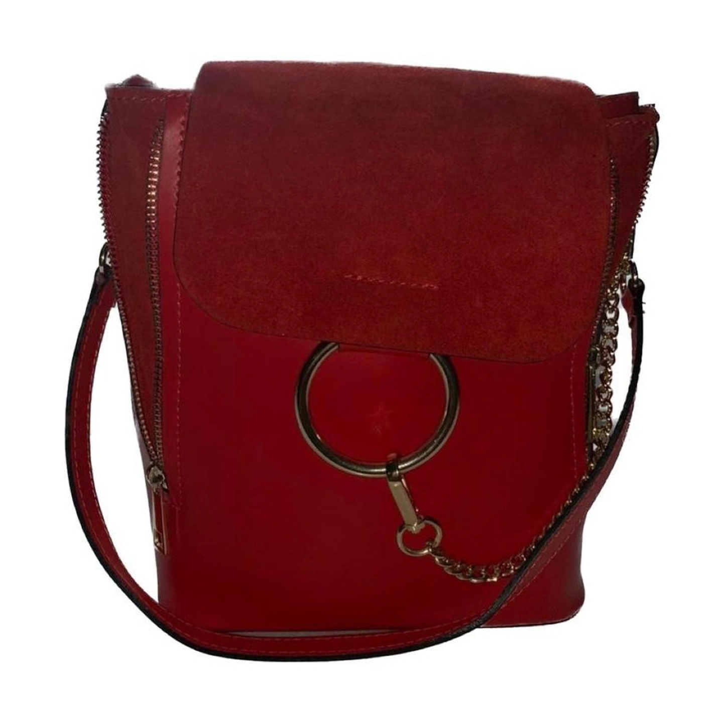 Red leather purse and backpack