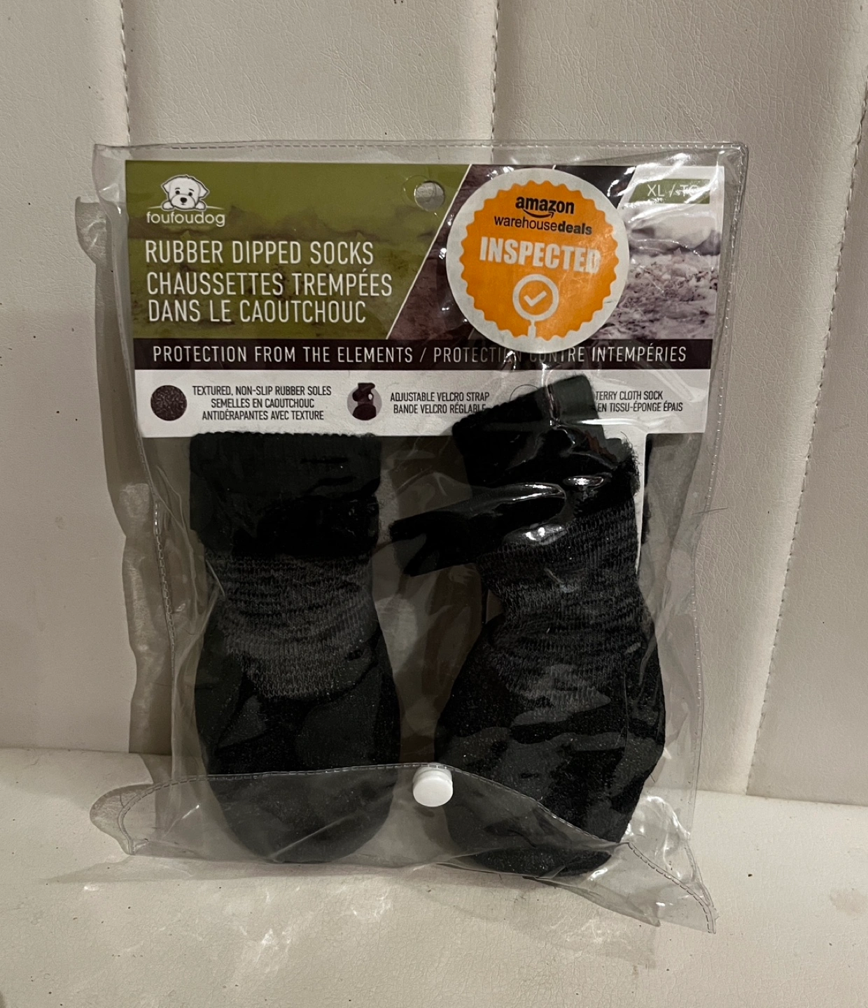FouFou Dog rubber-dipped dog sock boots. Size X-Large.