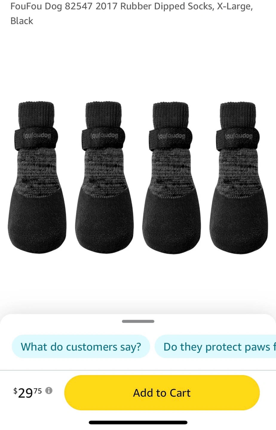 🧡FouFou Dog Rubber Dipped Socks/Boots, X-Large = 2.4 inch, Black