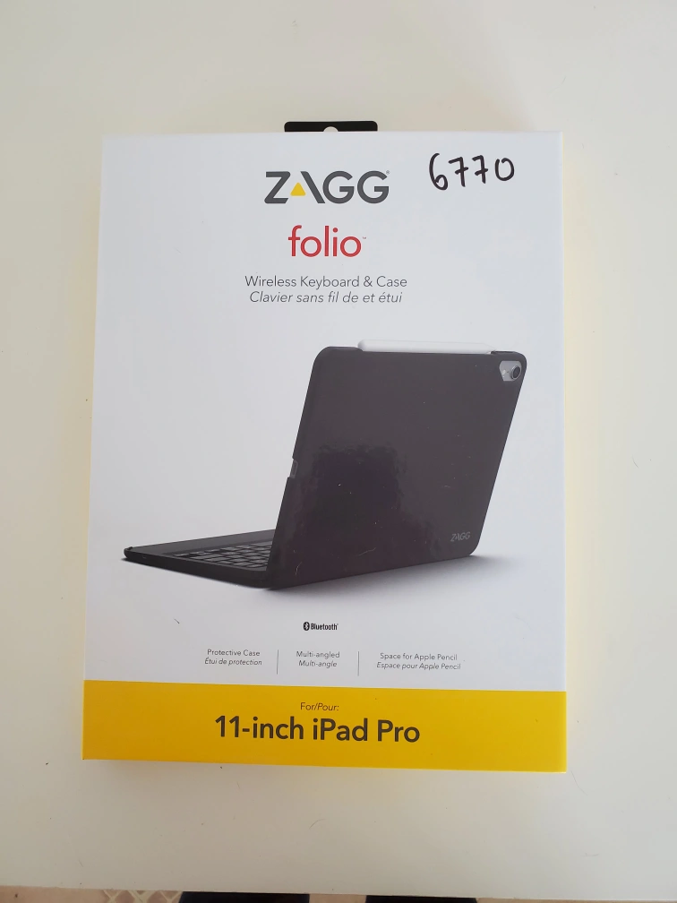 New ZAGG Folio keyboard case. Designed for 11-inch iPad Pro. Bluetooth wireless connection. Protective case. Multi-angle viewing. Space for Apple Pencil. Thin, lightweight, protective.