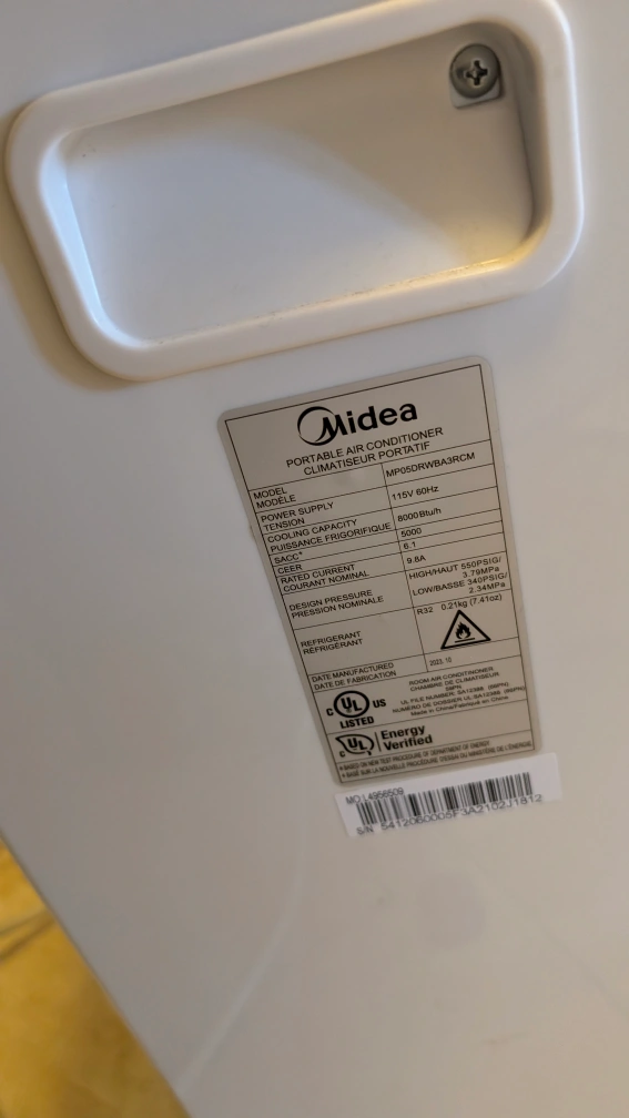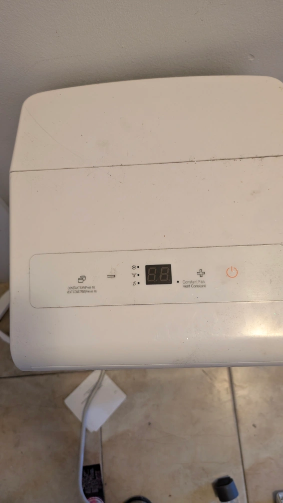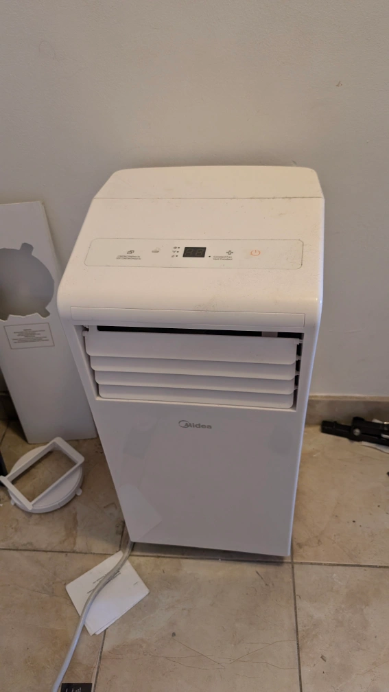 White portable air conditioner. Digital controls. Good for small spaces. Used condition.