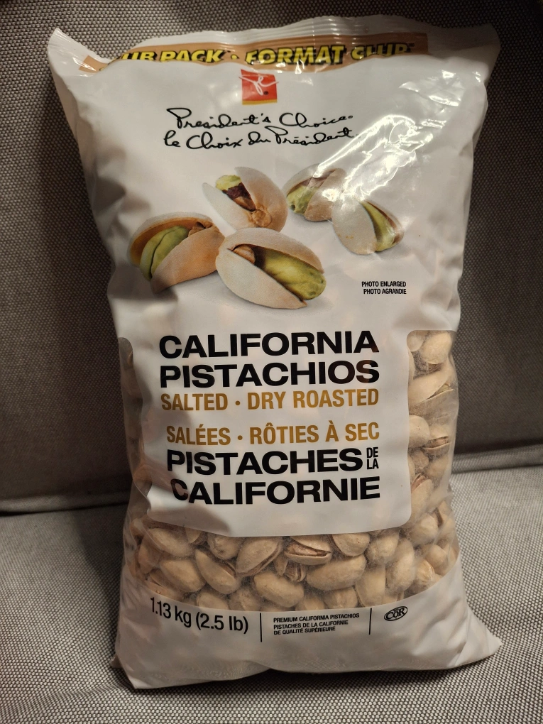 671Dry roasted and salted pistachios. 1.13kg/2.5lbs. best before Sept 2023 but is sealed and unopened