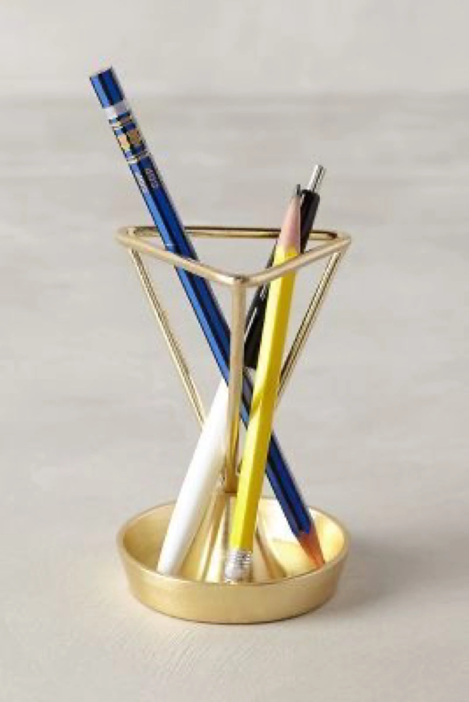 Anthropologie Gold Geometric Pen/Pencil Holder