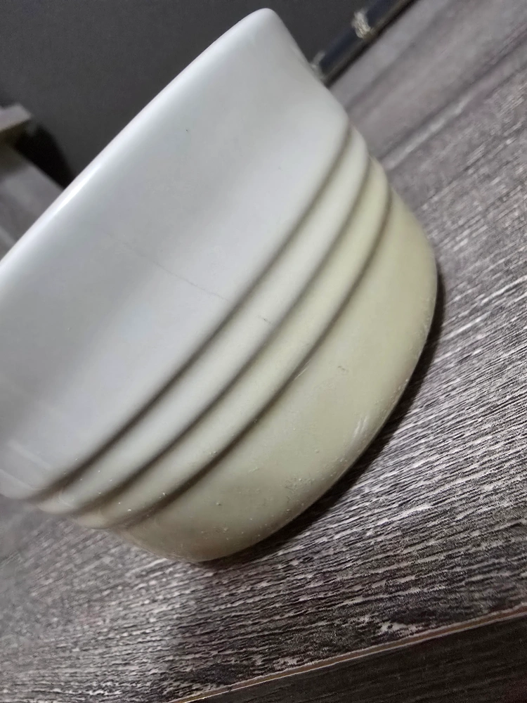 le creuset bowl is oven, microwave and freezer safe. Lightly used, one scratch light mark on the exterior wall. Soap dispenser is used and cleaned. Tumbler is new and never used.