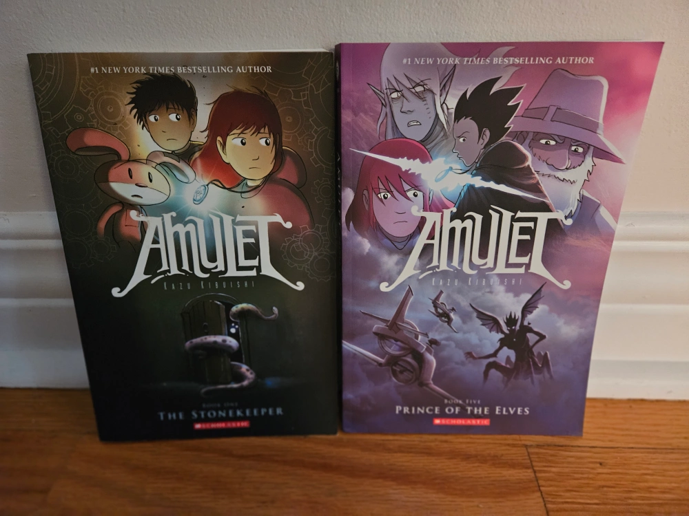 Two graphic novels from the Amulet series. Books in excellent condition. Includes volumes one and five. only best offer pls