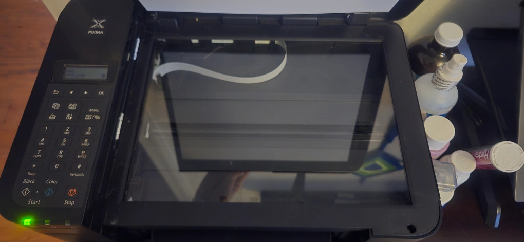 All-in-one functionality. Without box, power cable included, new cartridges needed. Works perfectly, and great condition.