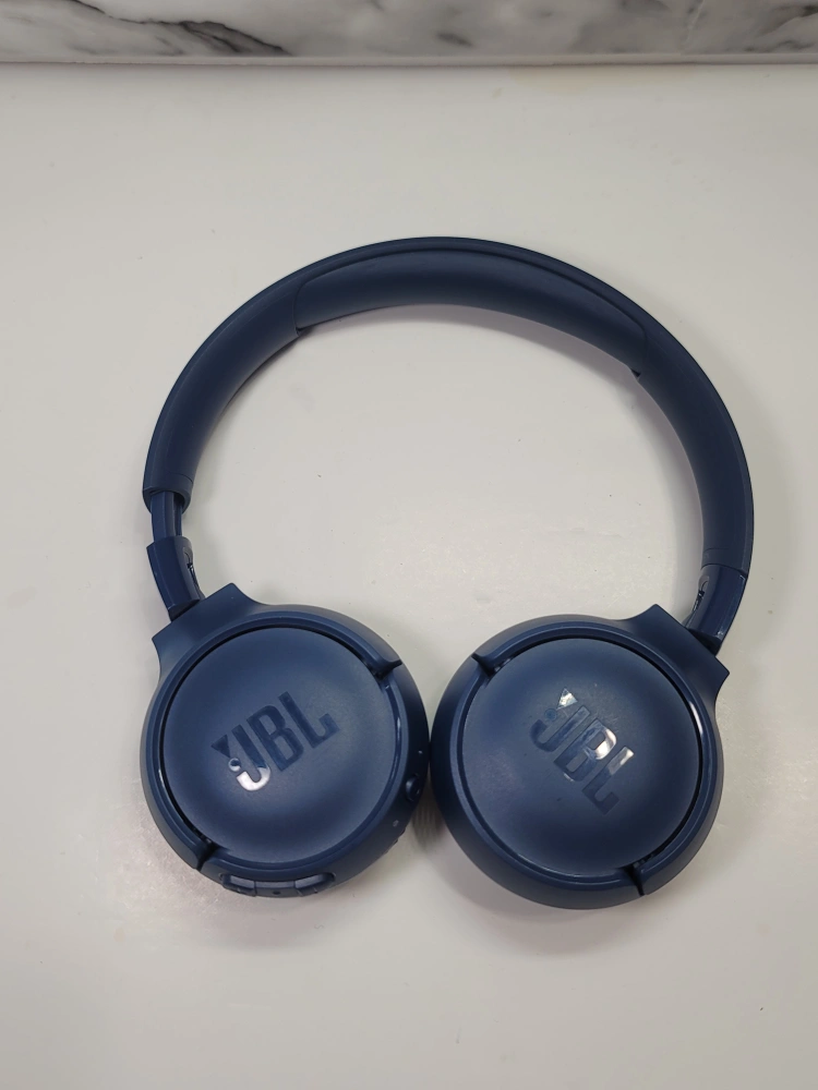 Wireless on-ear headphones. Navy blue colour. Great sound quality. Comfortable fit. Foldable design for easy storage. Gently used. Working good