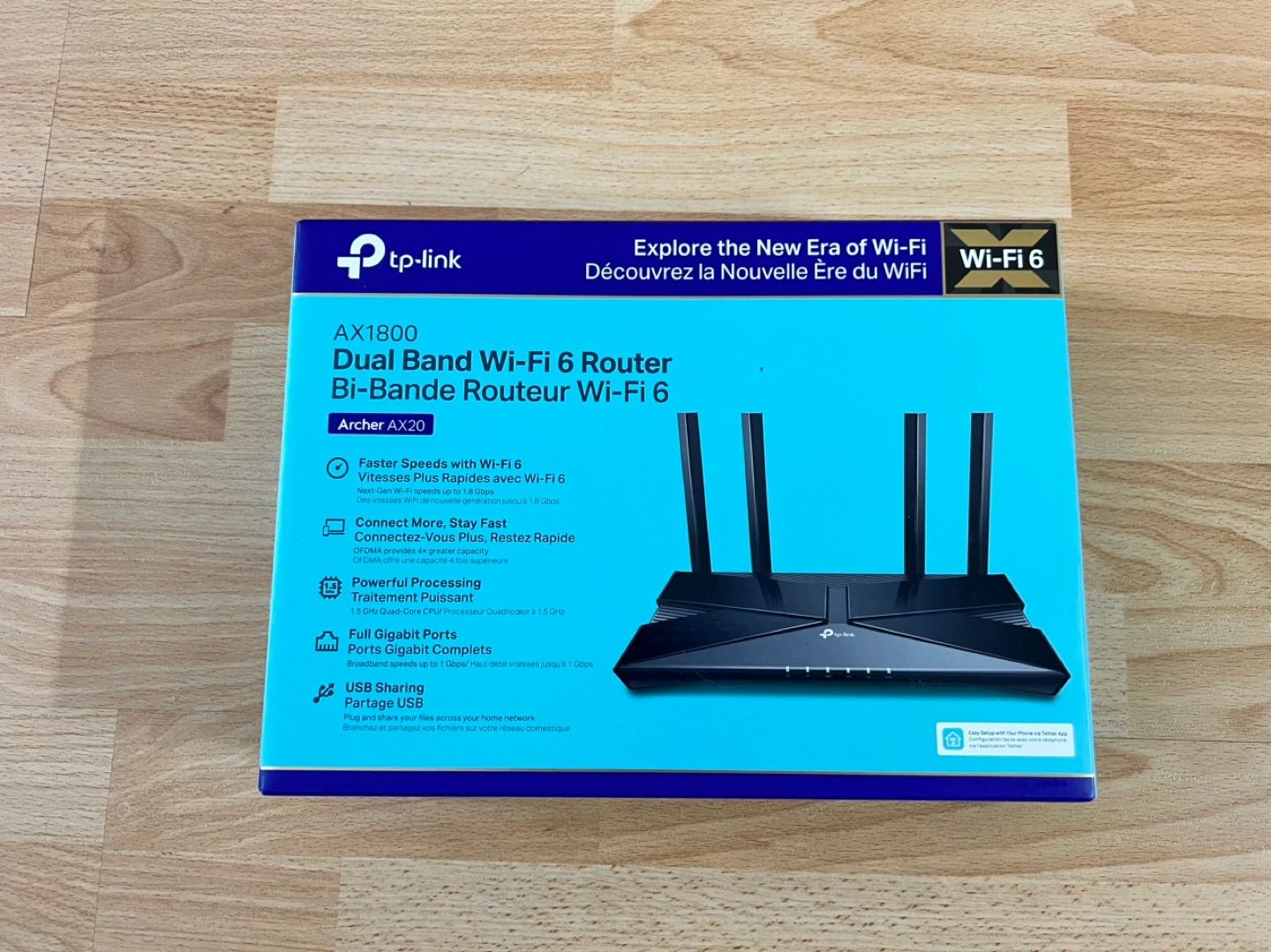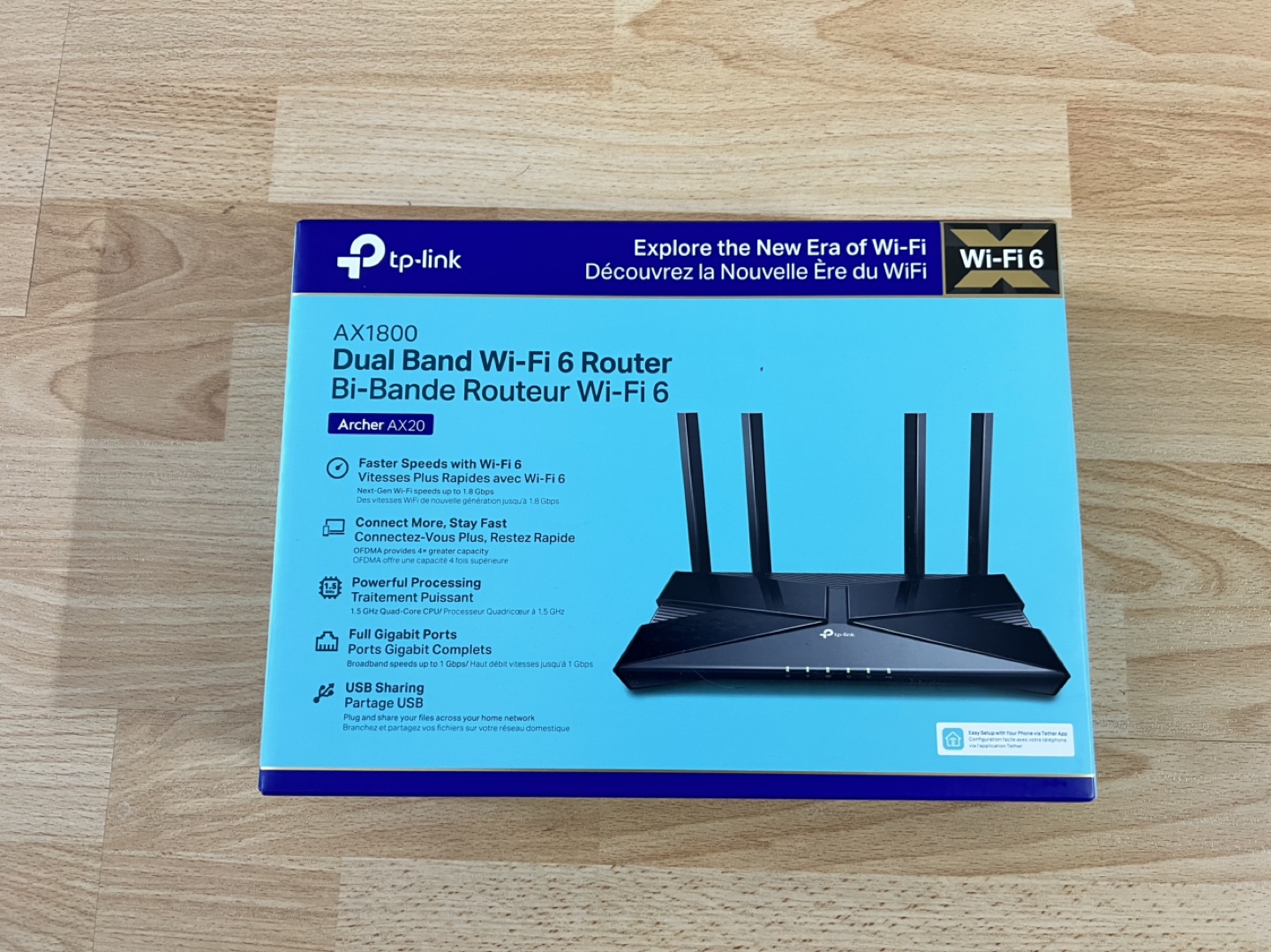 TP-Link Archer AX20 Wi-Fi 6 router. AX1800 dual-band router. Works well. Upgraded to a faster unit.