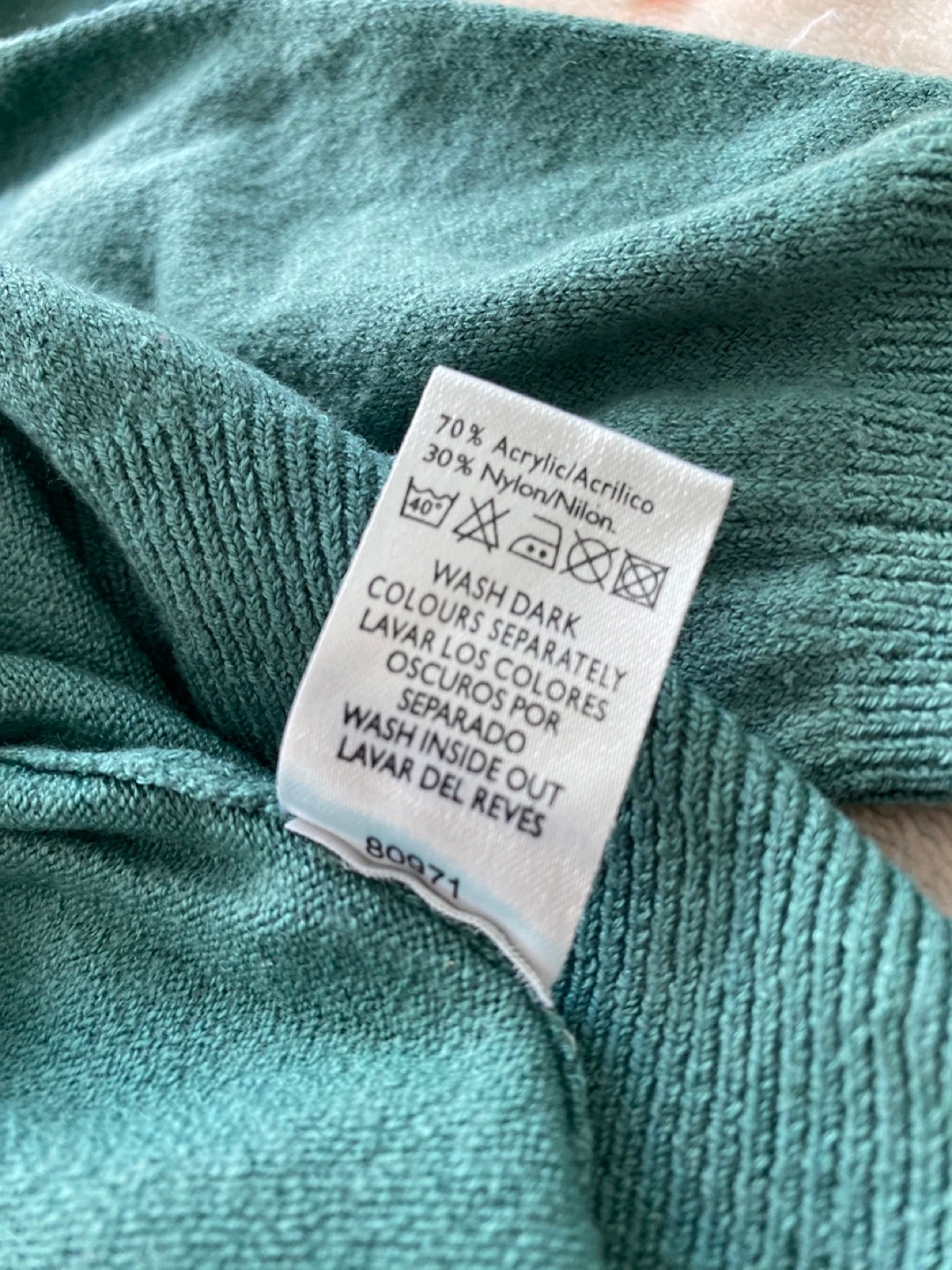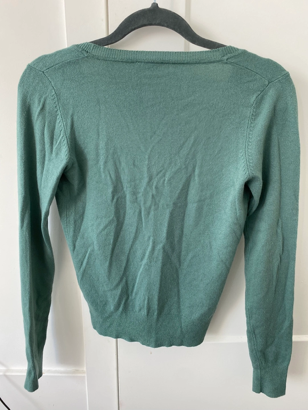 Women's teal green cardigan with a Button closure and Long sleeves. Size 8-10.
