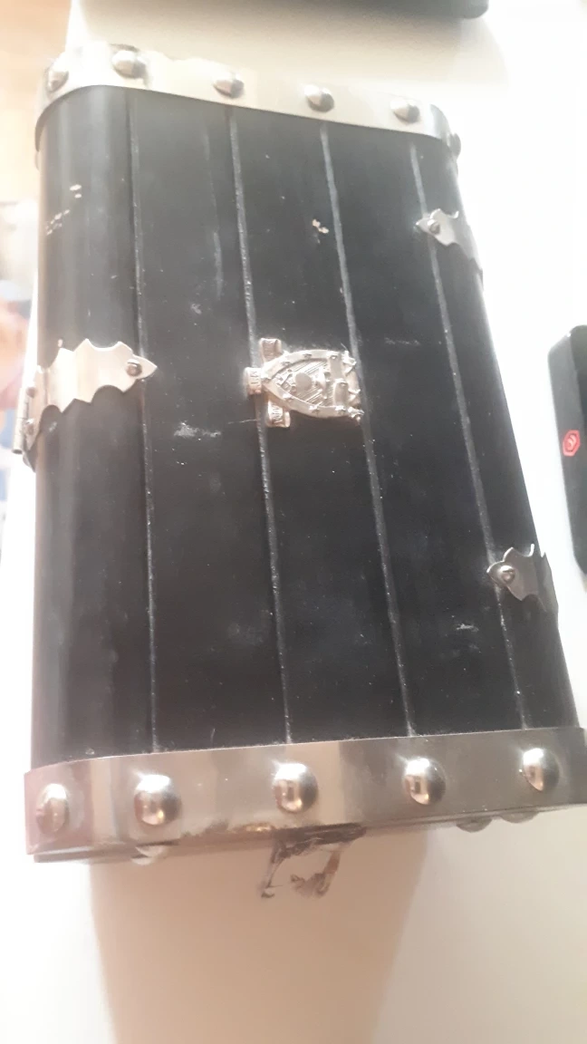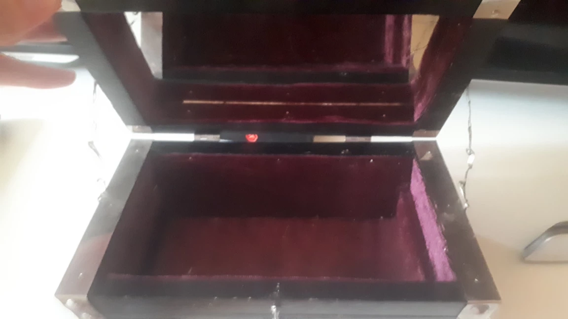 heavy! very vintage, a couple of scuffs, needs to be polished up. Real silver on casing nice velvet interior suitable for storing jewelry etc. can be locked, small mirror inside. gold sticker shows made in Japan
