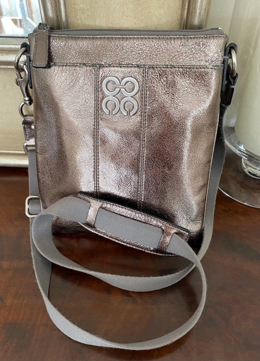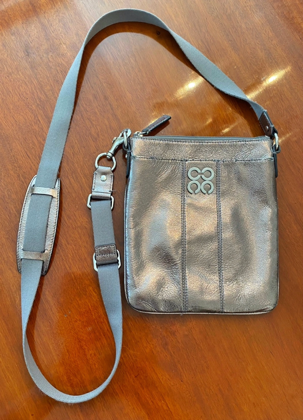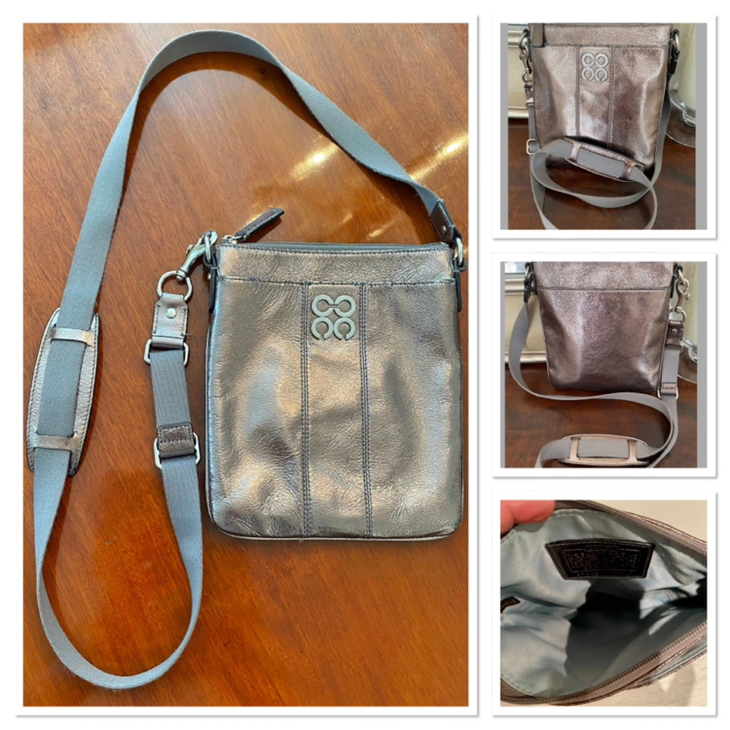 ❤️COACH Super cute crossbody pewter ALL LEATHER purse