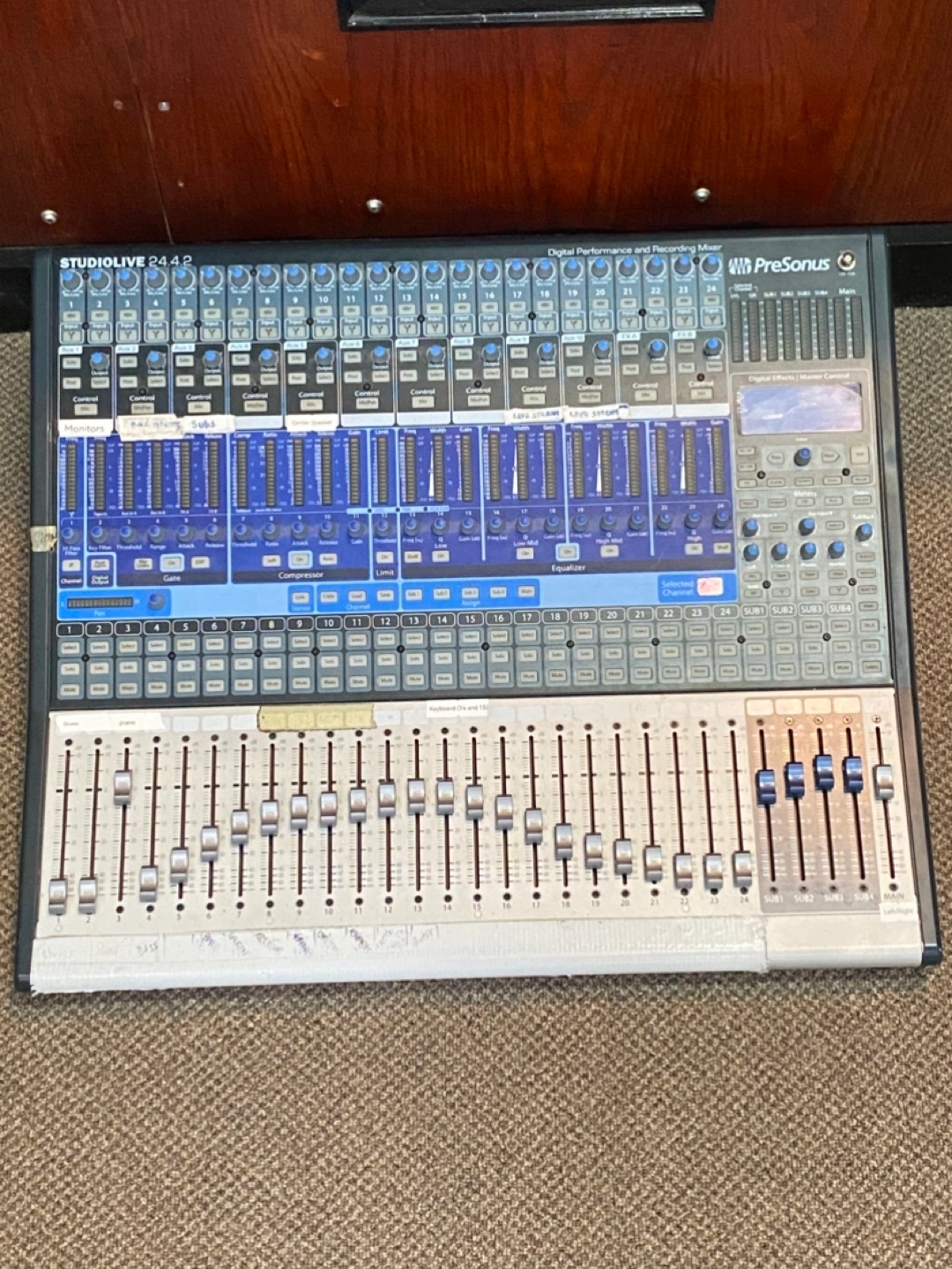 PreSonus StudioLive 24.4.2 digital mixer. Includes a custom-built wooden rack. Great for studio or live sound applications. Check images for details.