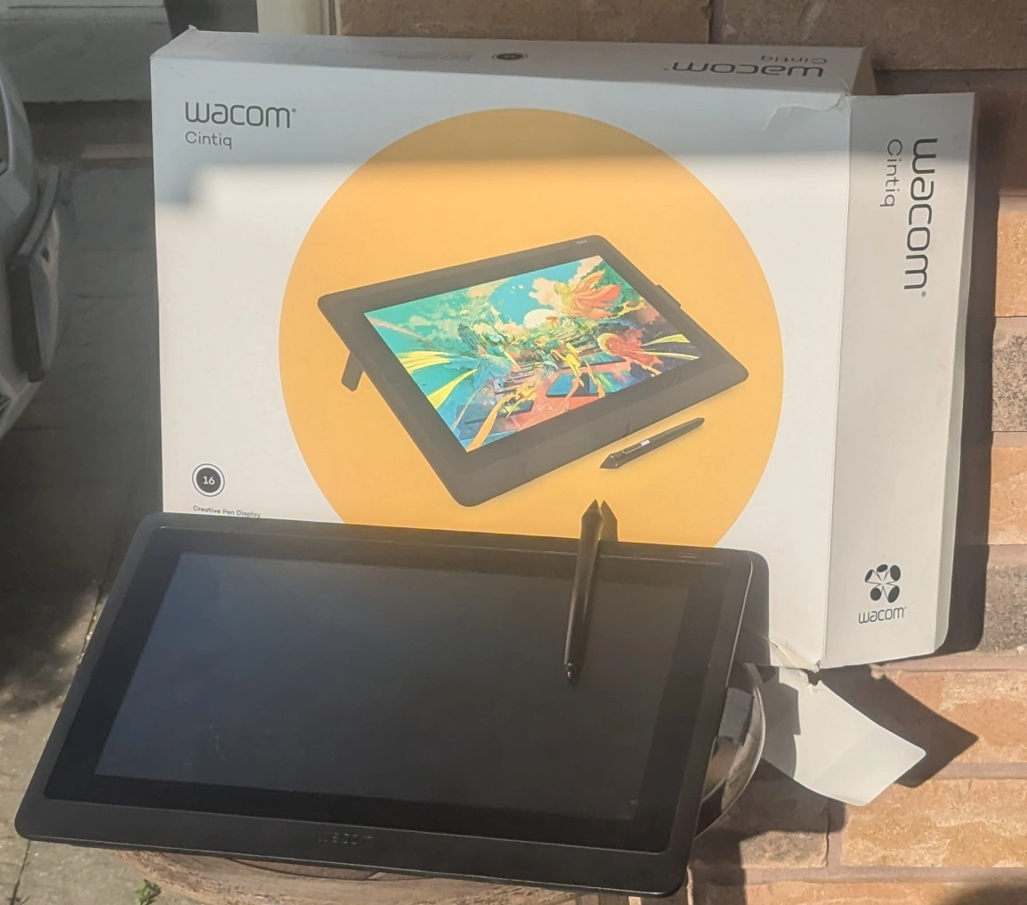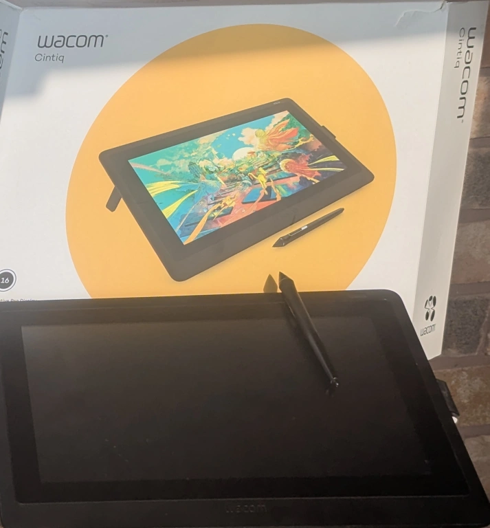 Used Wacom Cintiq 16 creative pen display. Includes pen, power supply, and cables. In original box.