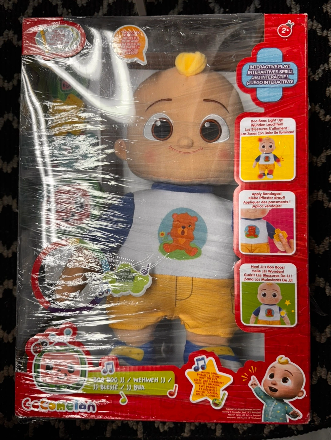 Interactive plush toy. Lights up. Plays sounds and phrases. Includes bandages. Ages 2+