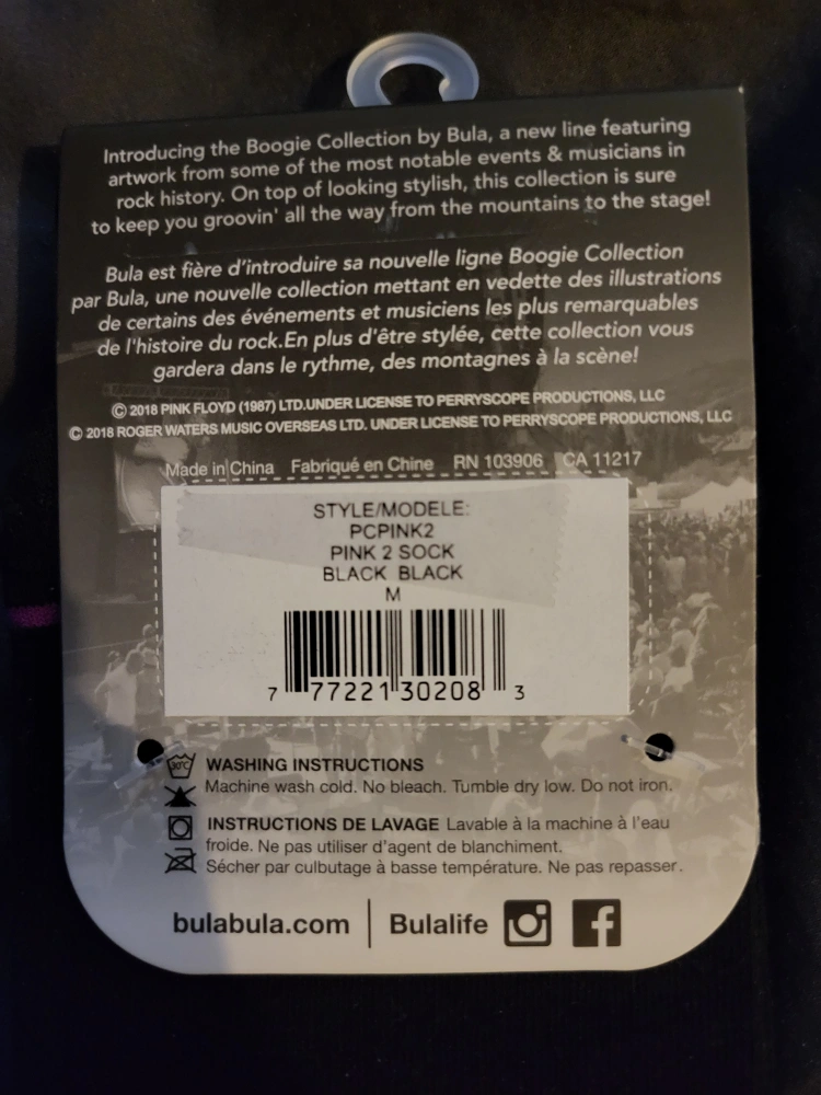 Bula Pink Floyd socks. Black with purple logo. Size medium. New with tags. Machine washable.