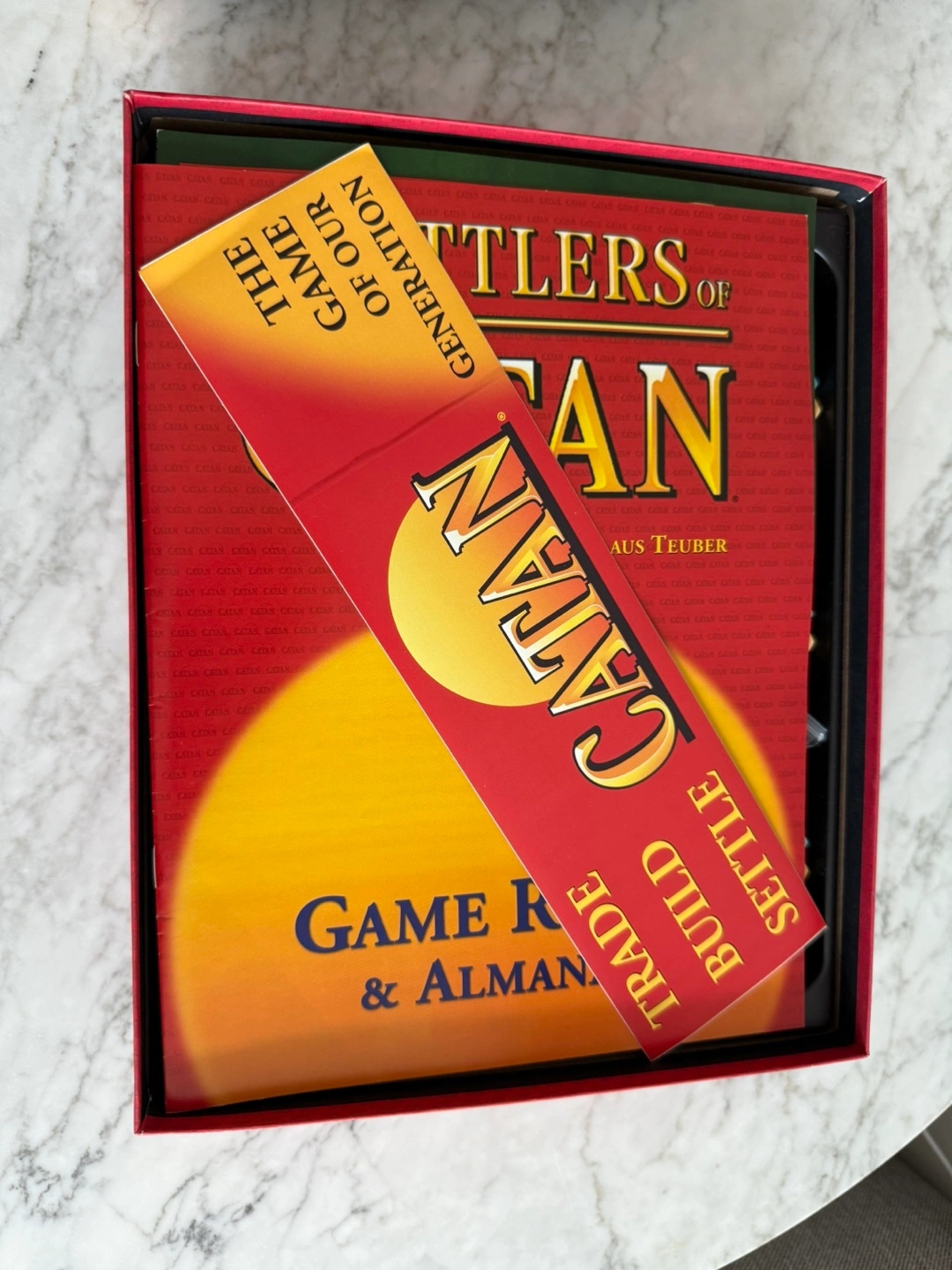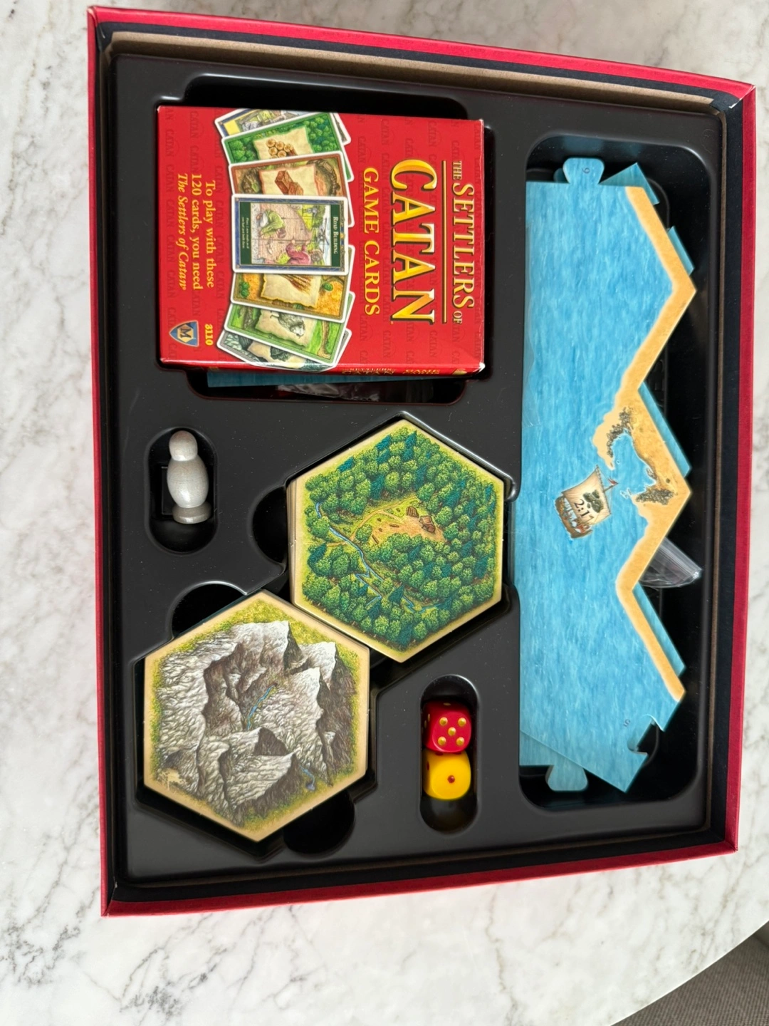 Award-winning game of discovery, settlement, and trade. Includes game board, playing pieces, and cards. Great for families and game nights.
