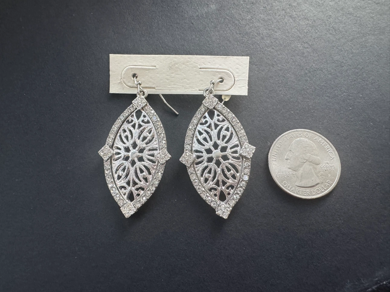 NEW Beautiful silver tone filigree earrings.