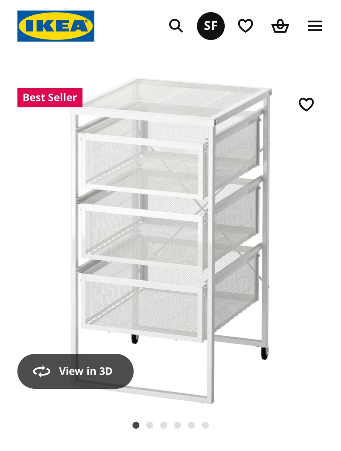IKEA White 3-Drawer Rolling Cart Organizer