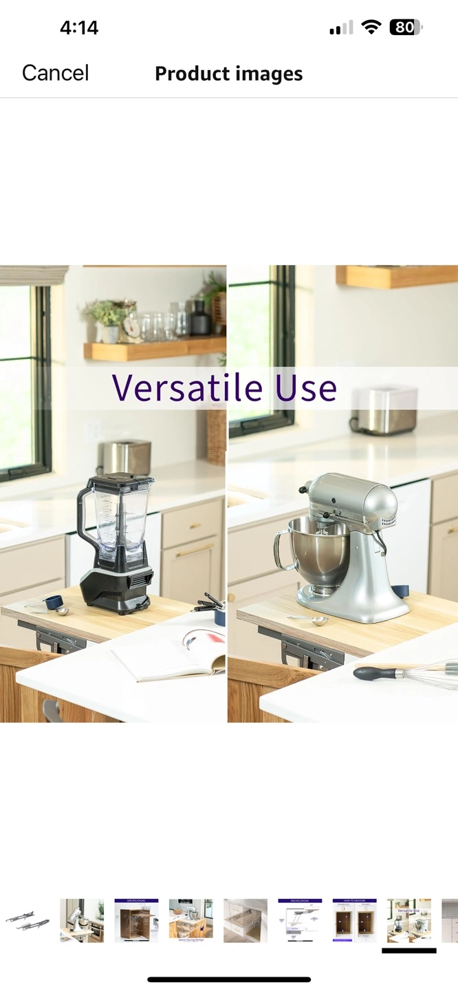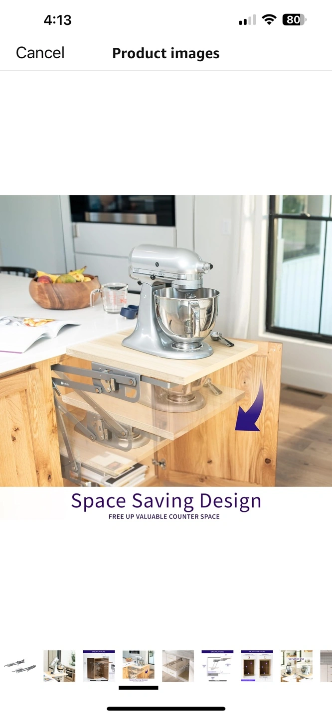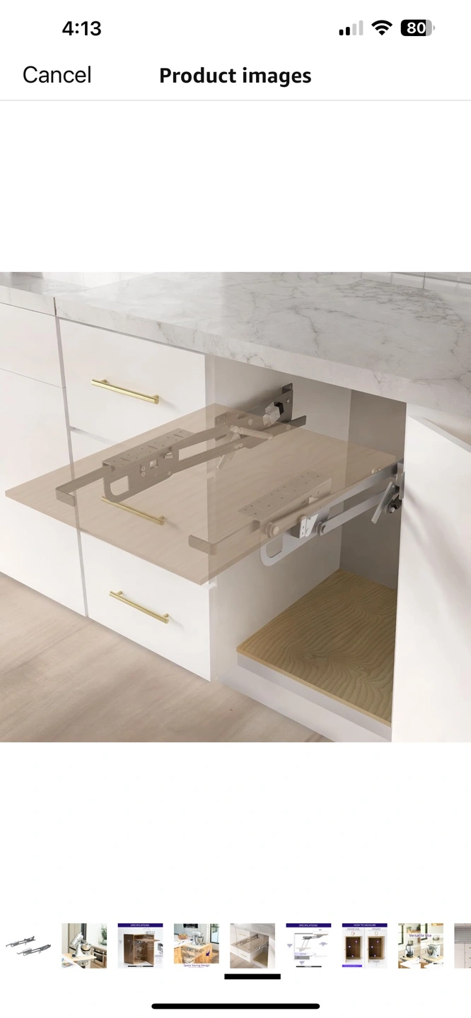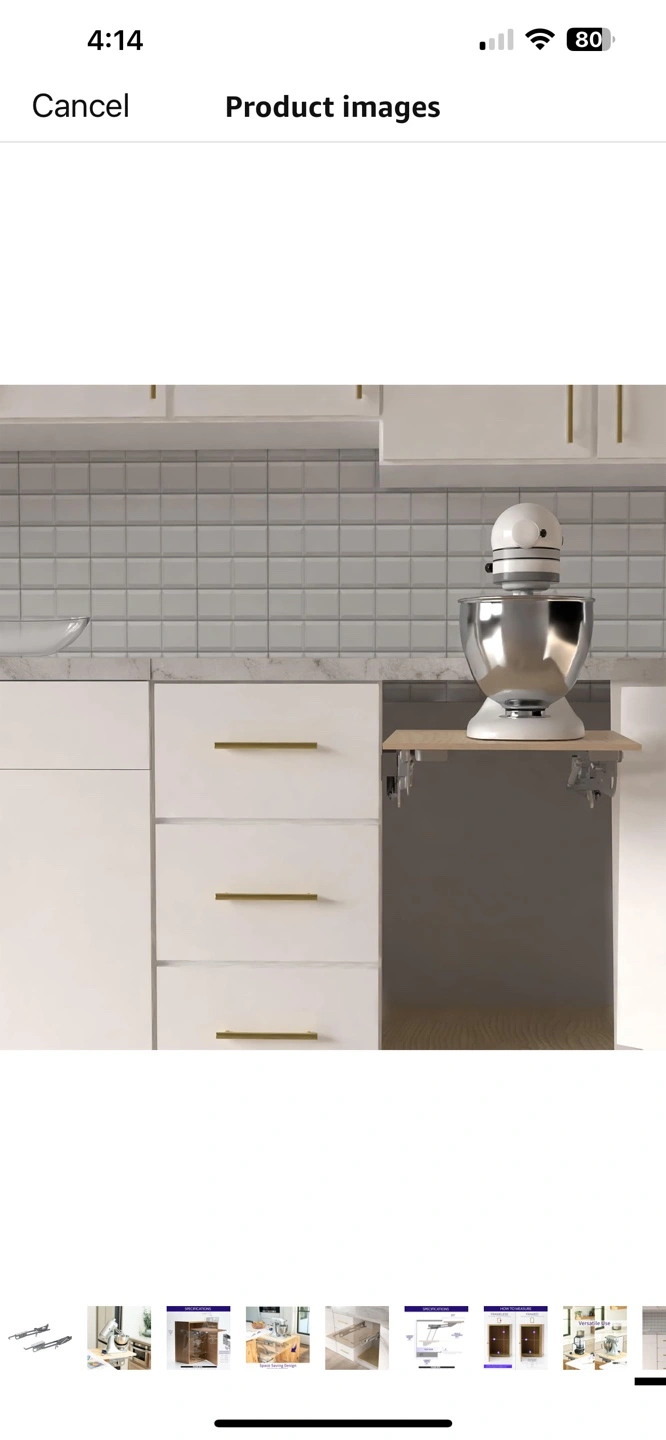 75Check out my other listings Brand new open box Fold-away kitchen shelf. Installs inside cabinet. Organizes countertop appliances like blenders and mixers. Saves counter space. Freestanding design.